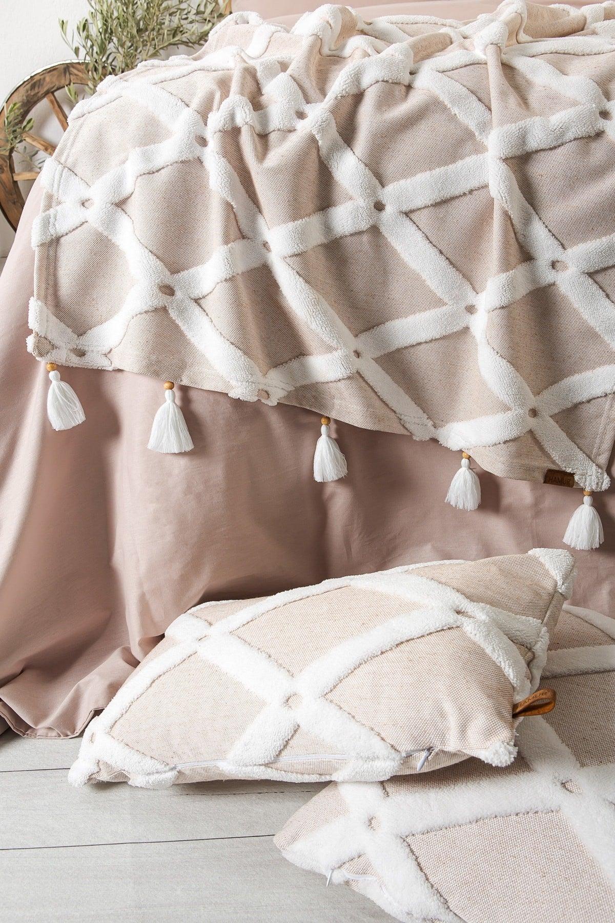 Bed Runner Throw Pillow Set Bohemian Punch Punch Pattern Bedspread Bella Beige