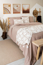 Bed Runner Throw Pillow Set Bohemian Punch Punch Pattern Bedspread Maldive Beige