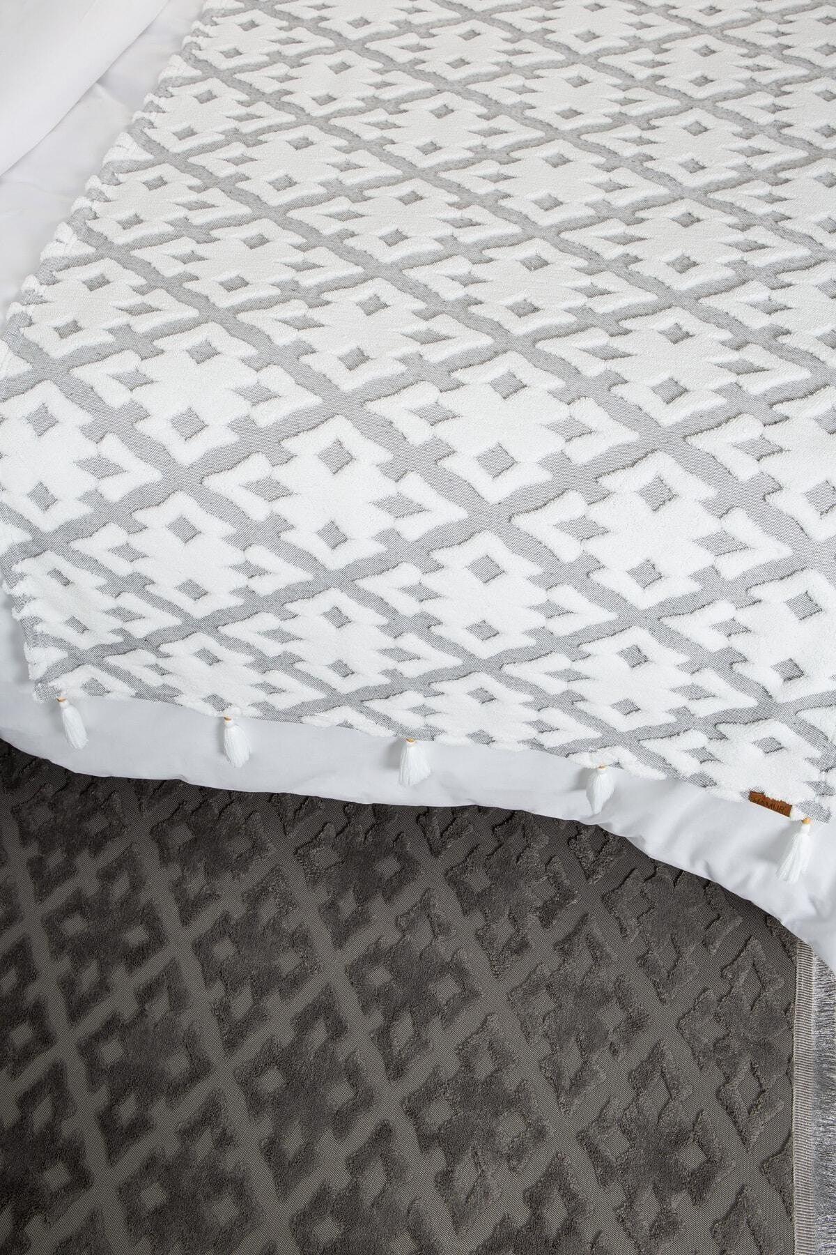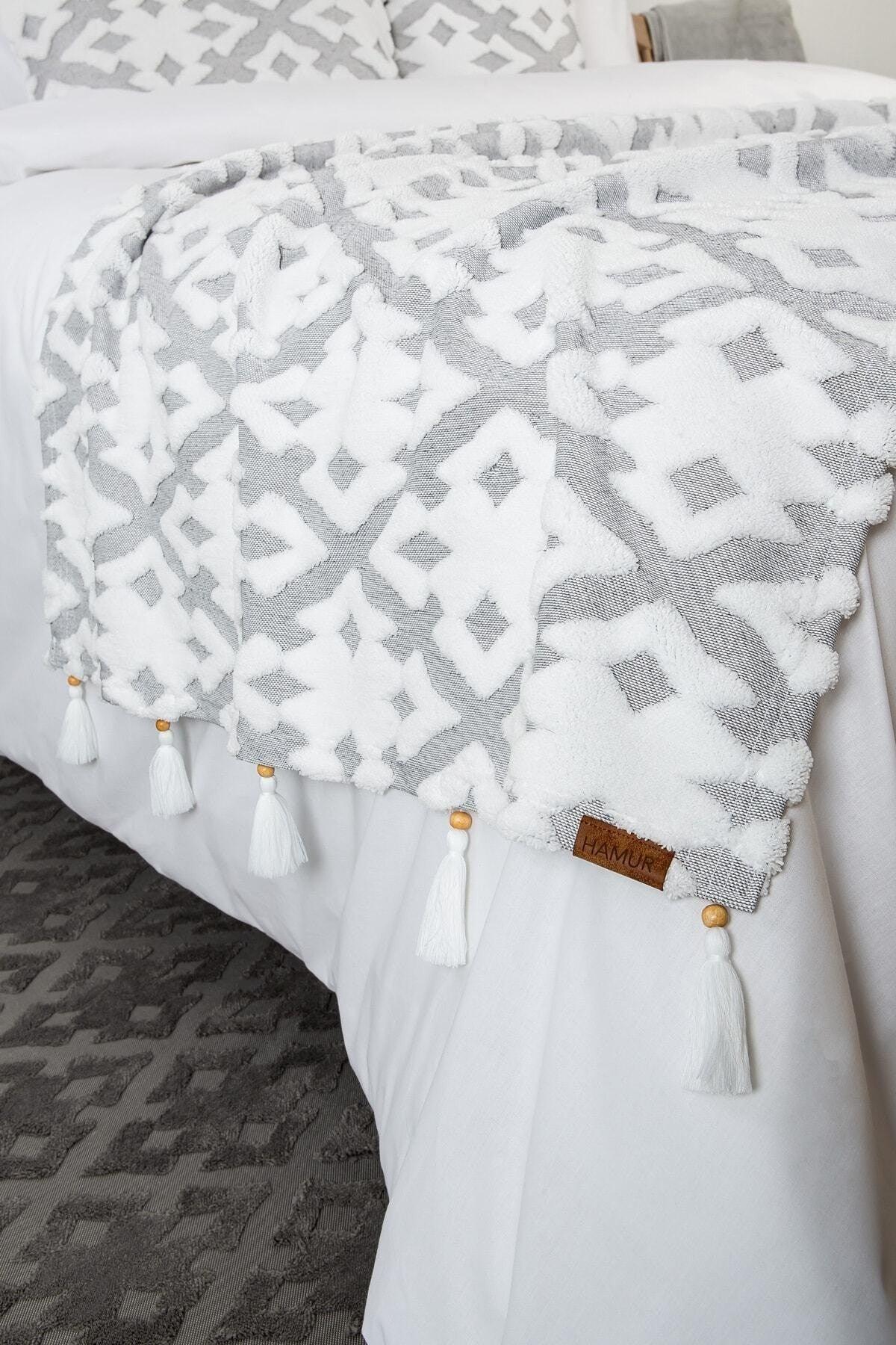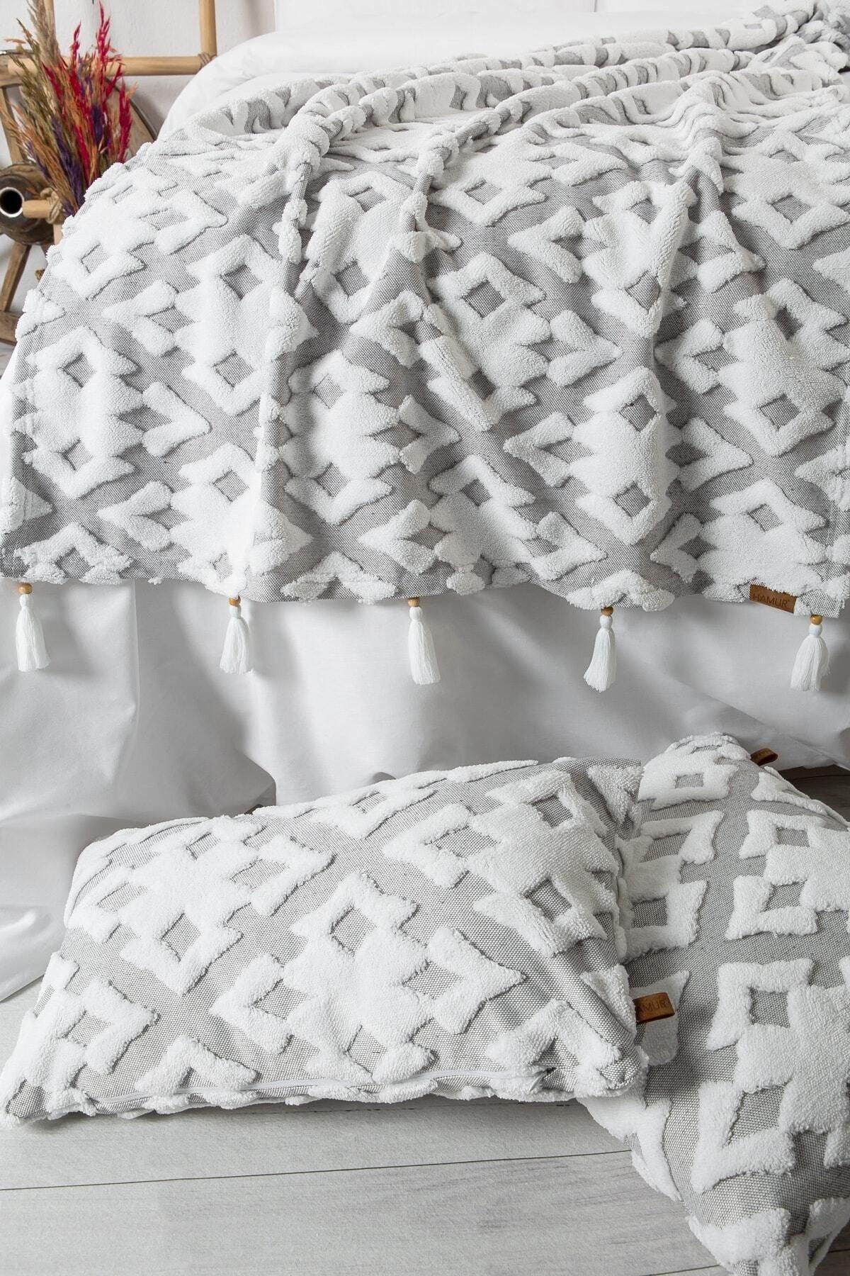 Bed Runner Throw Pillow Set Bohemian Punch Punch Pattern Bedspread Maldive Gray