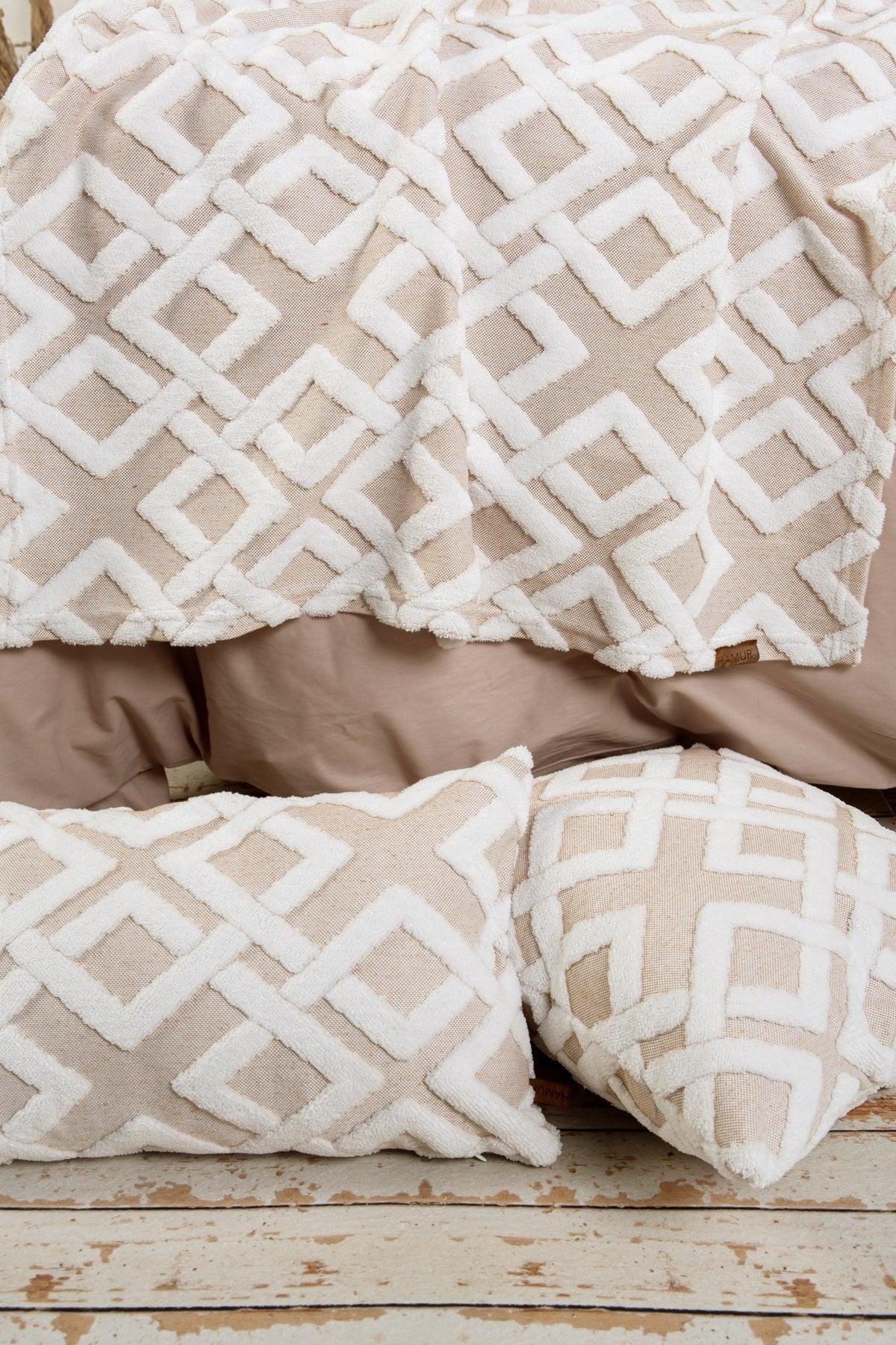 Bed Runner Throw Pillow Set Bohemian Punch Punch Pattern Bedspread Mila Beige