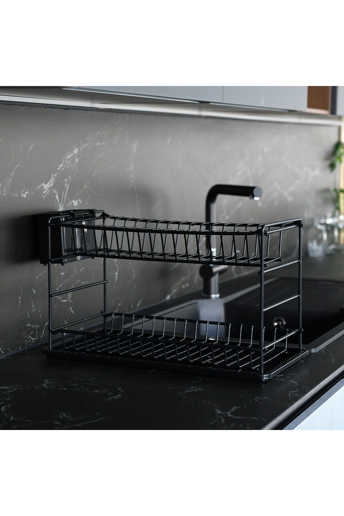 Black Pe Coated Stainless Two Layer Modular Plate / Dish Rack (50 Cm)
