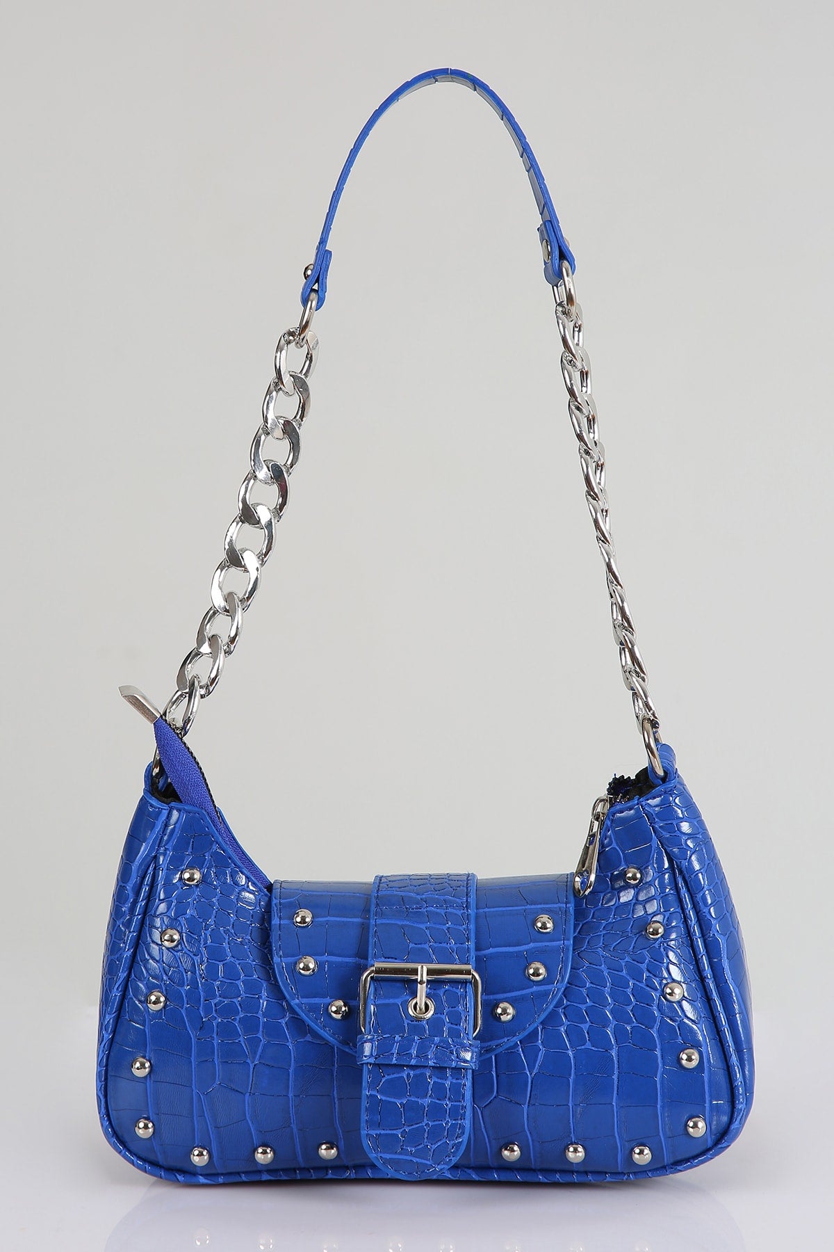 Bony Staple Crocodile Patterned Blue Handle Bag
