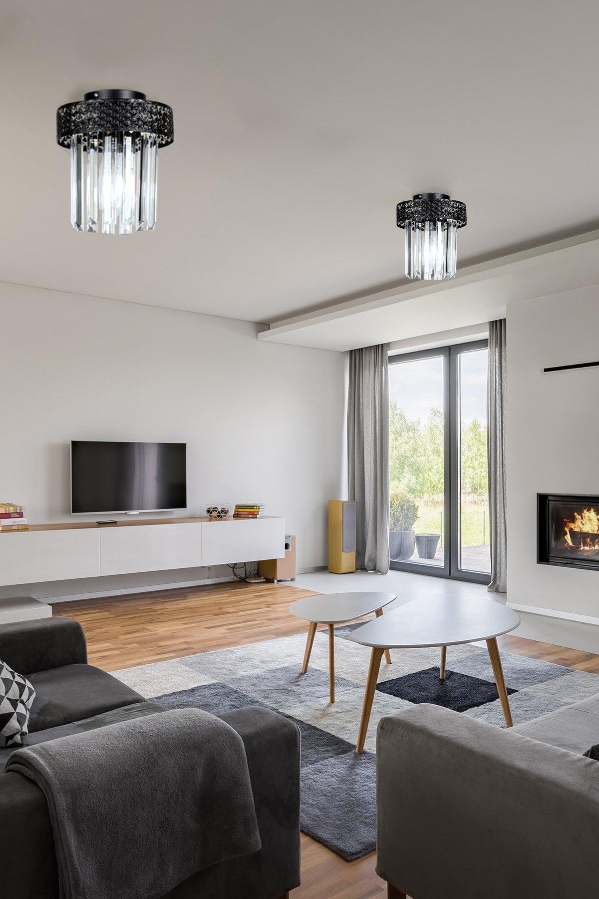 Citrus Single Black Lux Crystal Stone Ceiling Mount Chandelier