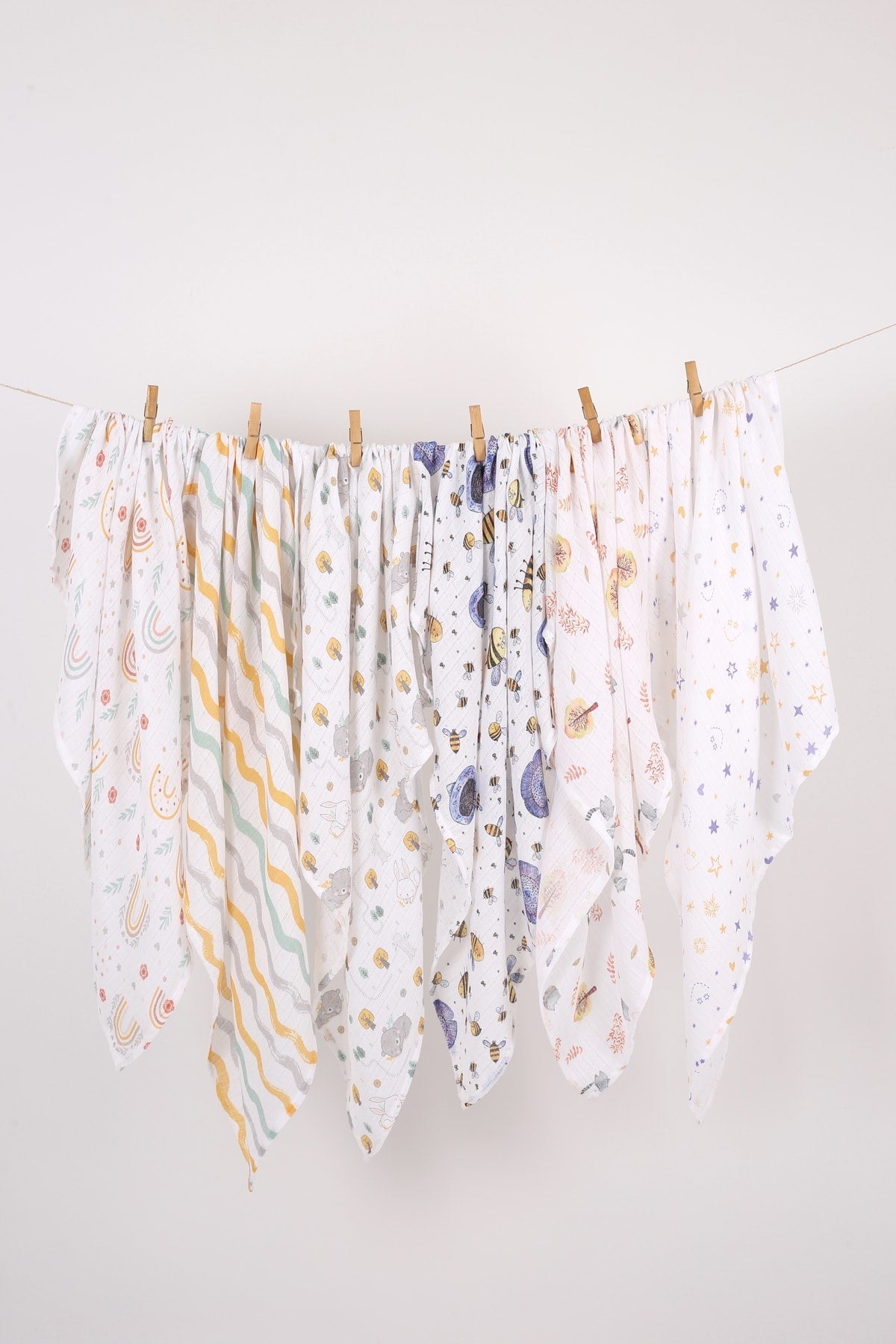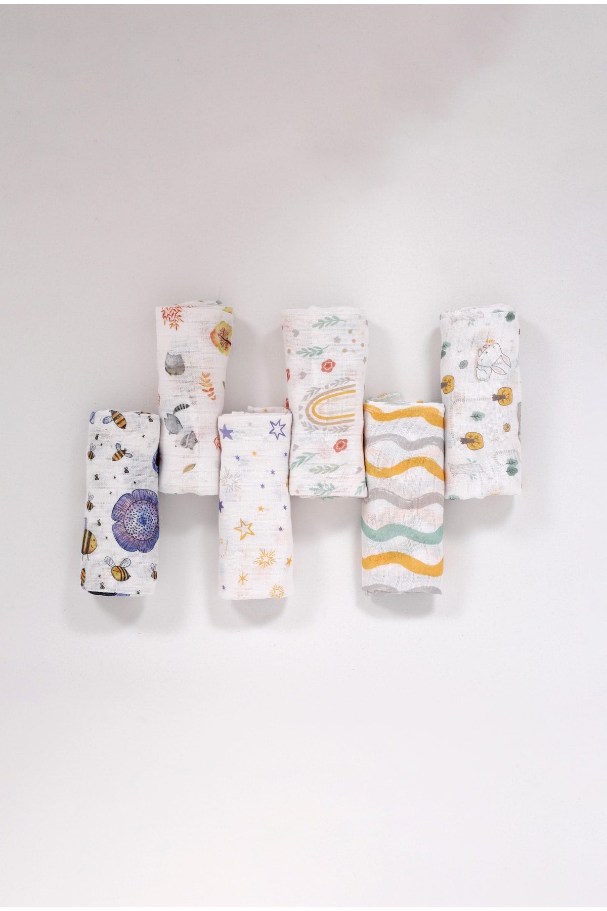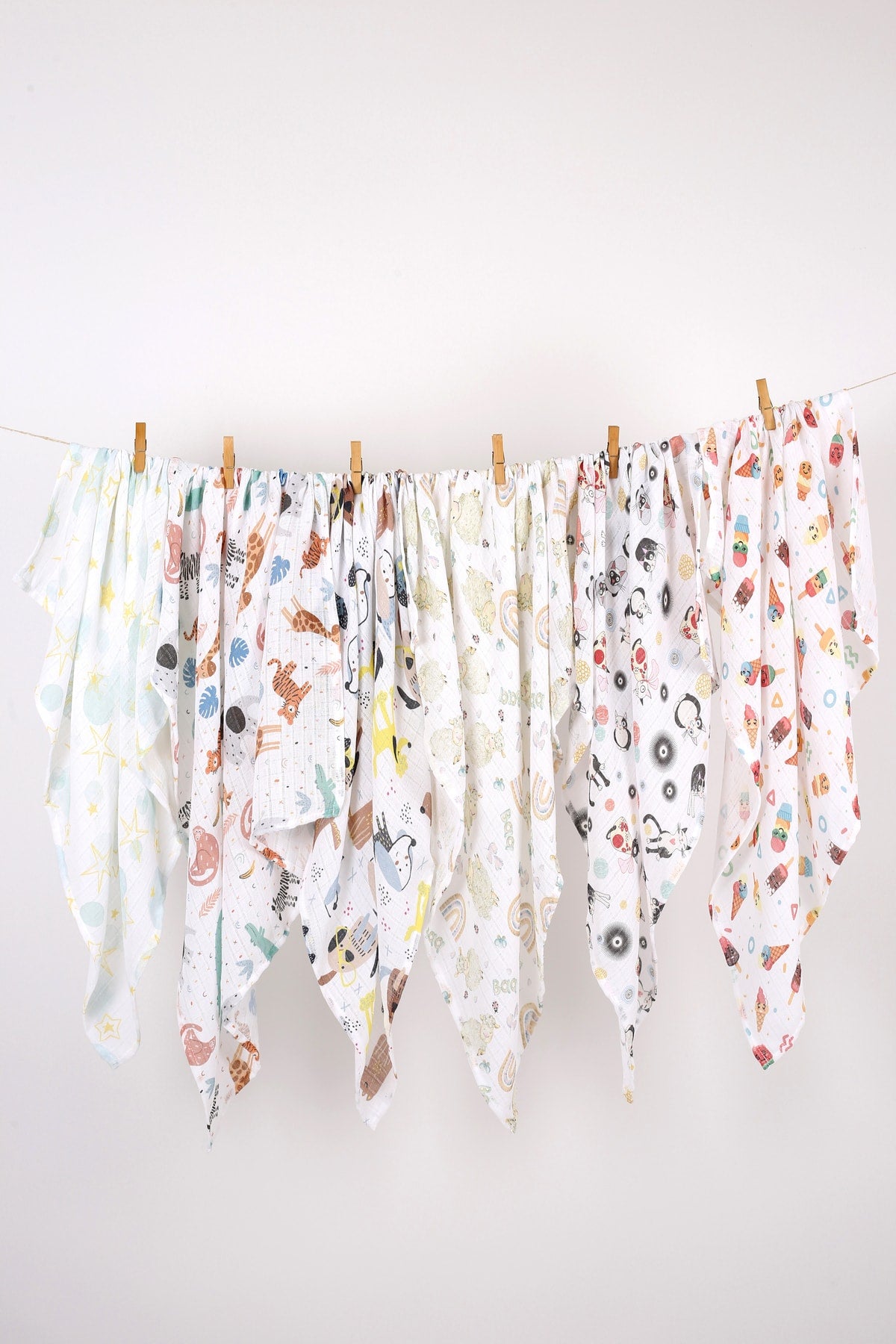 Digital Printed 6 Piece Multi-Purpose Muslin Cover Set - 75X75 Cm