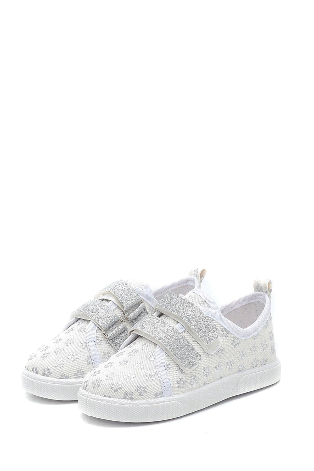 Double Velcro Silver Flower Linen Sports Children'S Shoes-Silver-F-4003