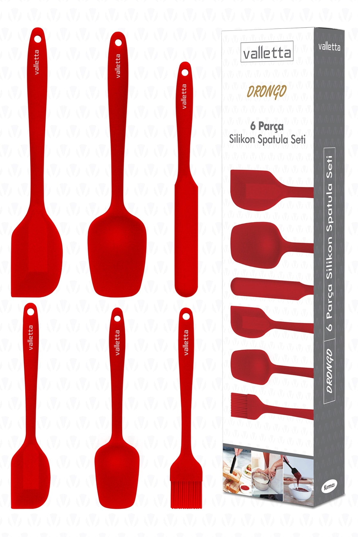 Drongo Heat Resistant Fireproof Non-Stick Silicone Spatula Set 6 Pieces Red