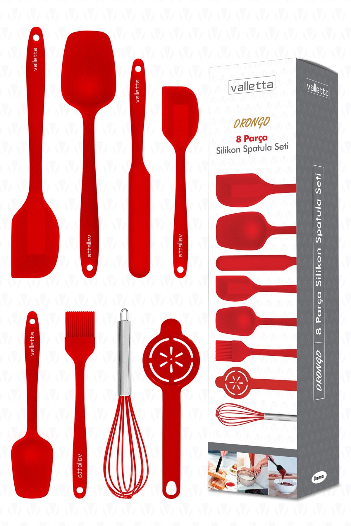 Drongo Heat Resistant Fireproof Non-Stick Silicone Spatula Set 8 Pieces Red