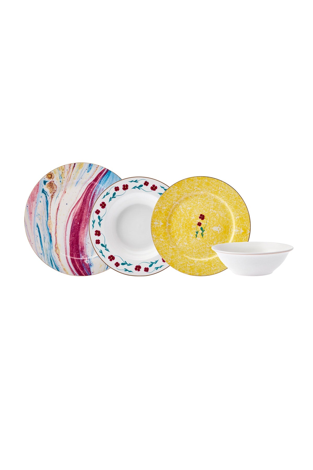 Karaca ebru 24 piece porcelain dinner set for 6 persons material: porcelain set content 6 pieces of serving plate (27 cm) 6 pieces of deep plate (20 cm) 6 pieces of cake plate (20 cm) 6 pieces of bowl (14 cm) Improved version for clearer understanding and better search visibility. Suitable for users seeking detailed and reliable product information.