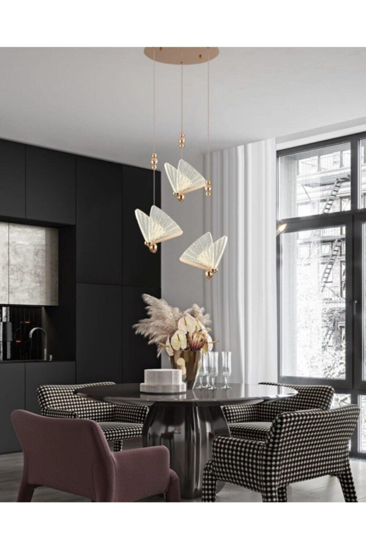 Elegance Modern Butterfly Design Triple Pendant Lamp Led Chandelier Rose Gold Yellow Great Visual