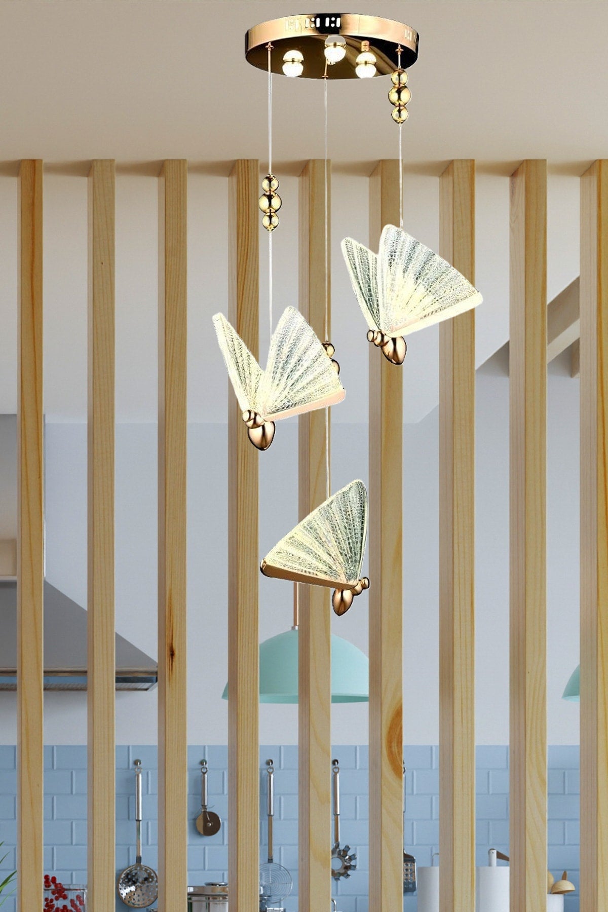 Elegance Modern Butterfly Design Triple Pendant Lamp Led Chandelier Rose Gold Yellow Great Visual