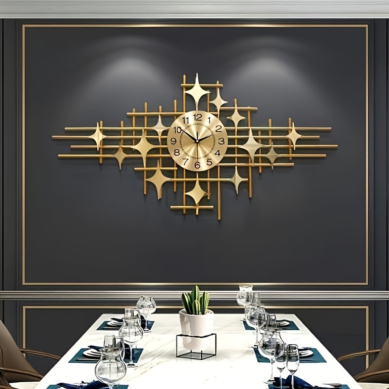 Elegant Large Metal Wall Clock - Silent, Tick-Free Quartz with 3D Starlight Design, Golden & Black - Modern Luxury Decor for Living Room, Bedroom, Office - Handcrafted, Irregular Shape, Office Wall Clock|Artistic Wall Accent|Golden Finish Clock