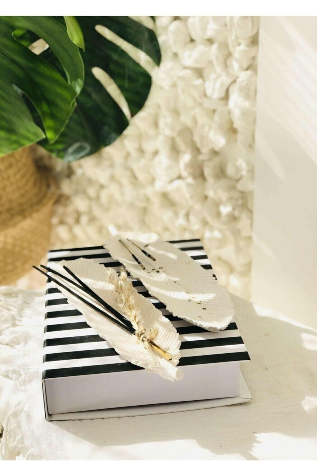 Feather Incense Holder Set Of 2 White Feather Incense Holders