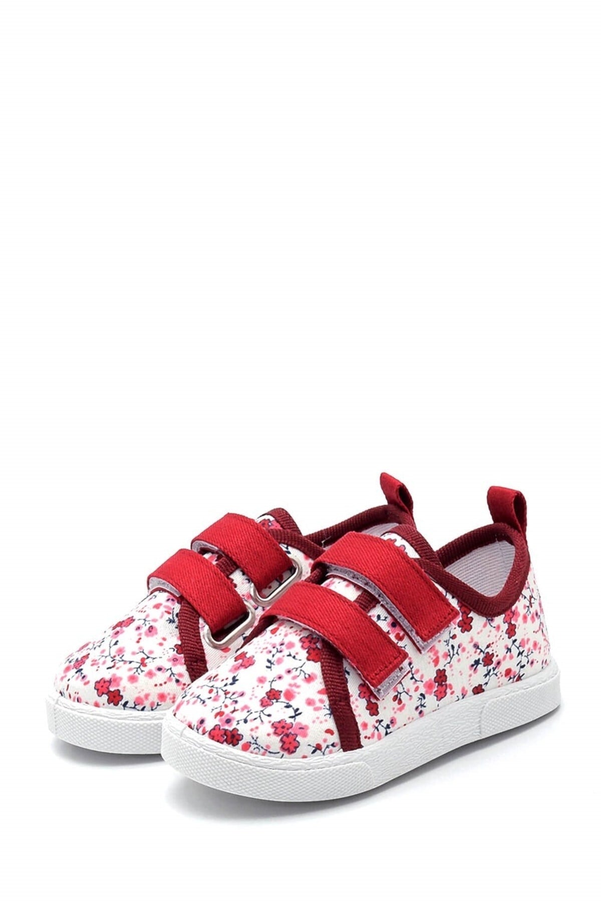 Floral Patterned Double Velcro Linen Children'S Sports Shoes-Burgundy-F-498