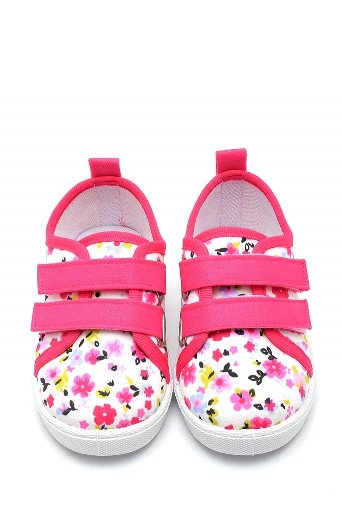 Floral Patterned Double Velcro Linen Sports Children'S Shoes-Fuchsia-F-498