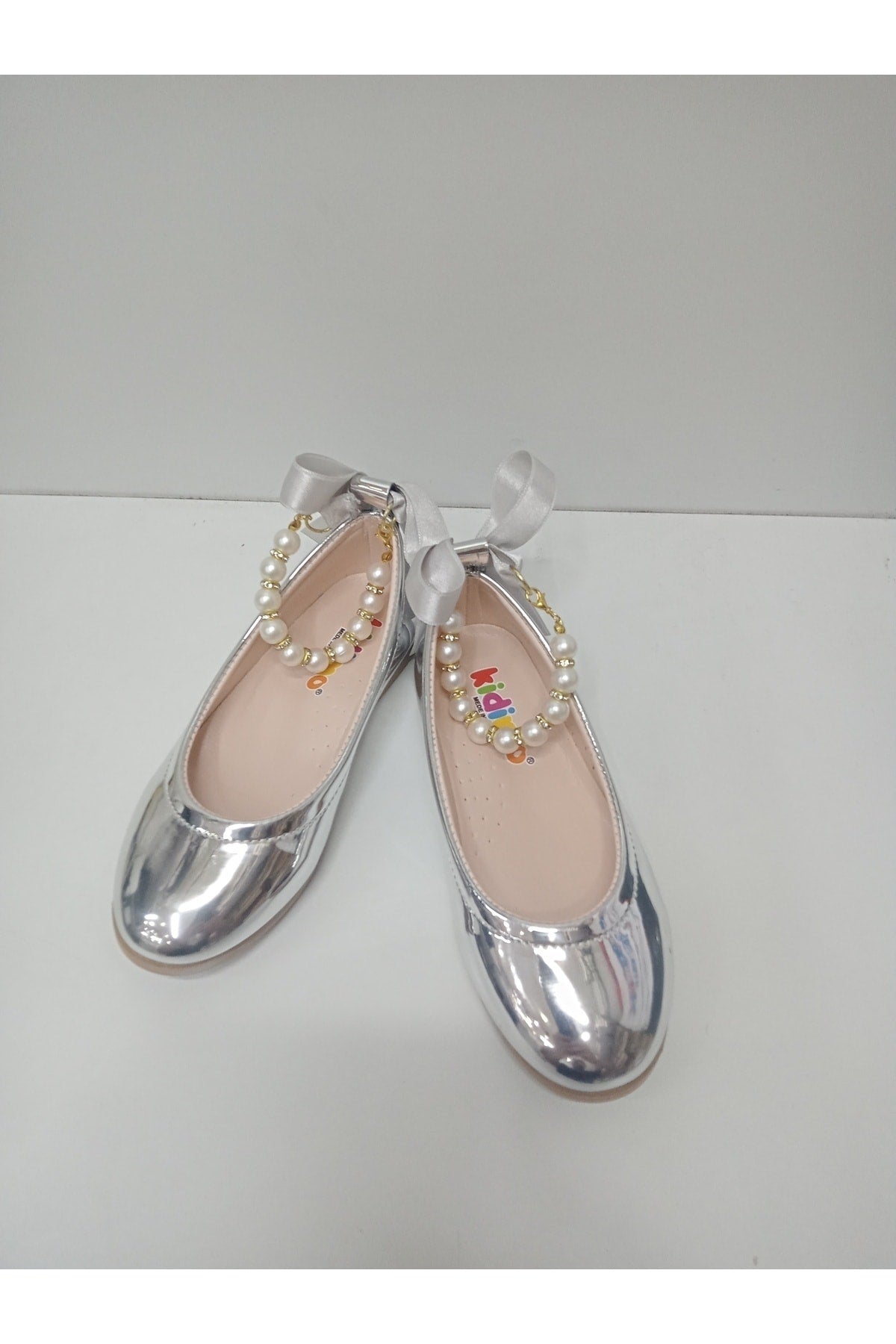 Girls' Pearl Stones Silver Mirror Orthopedic Flats