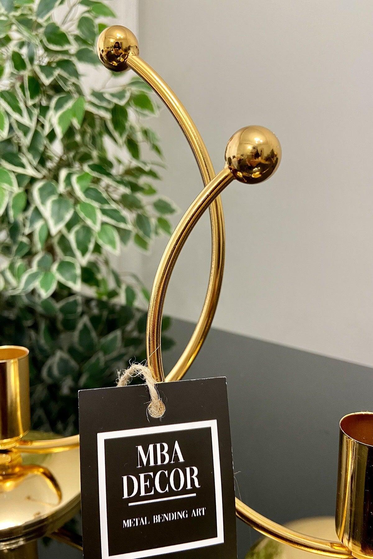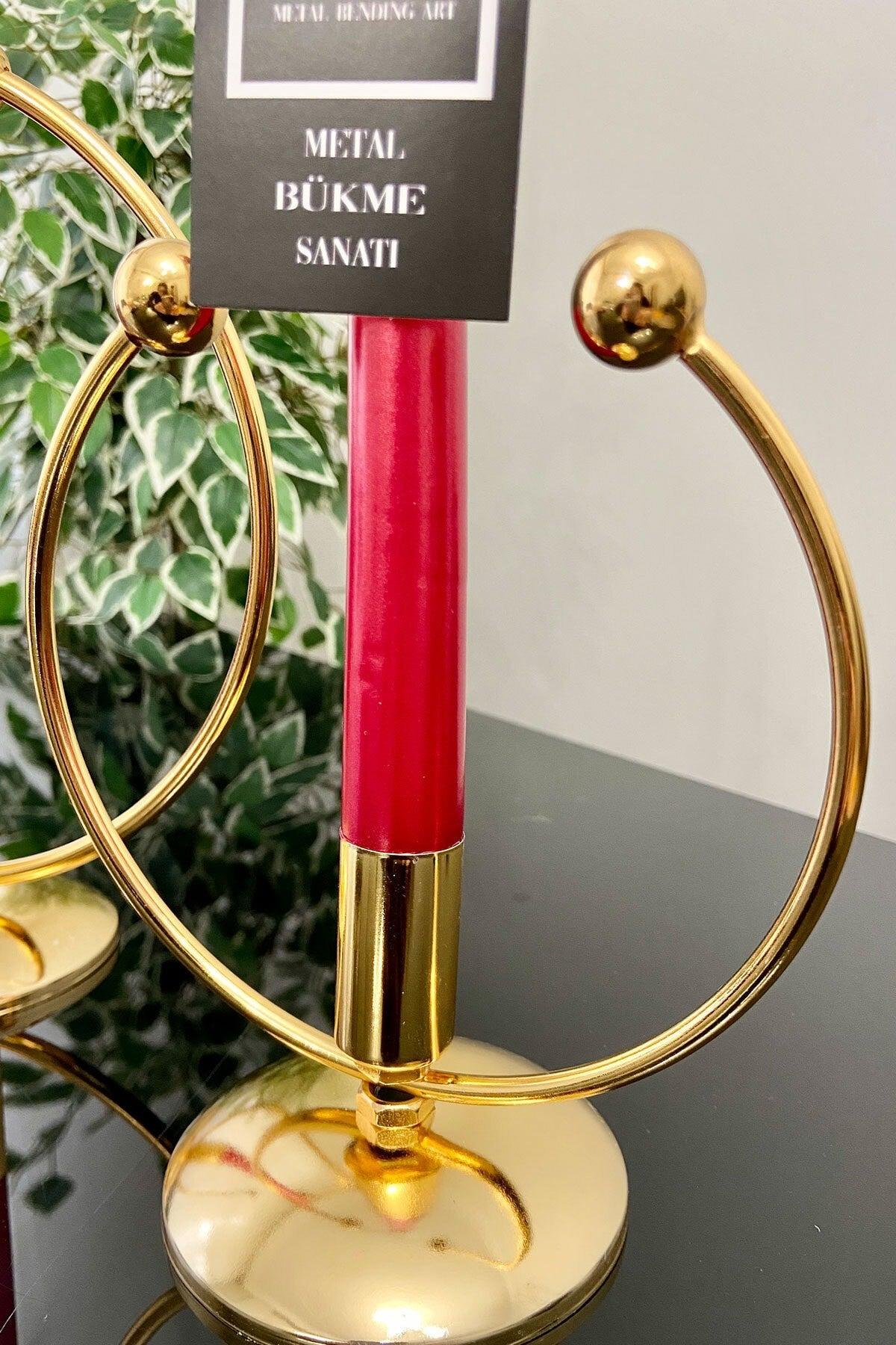 Golden Horn Full Gold Plated Metal Stainless Filled Iron 20-15 Cm 2 Li (Double) Candlestick Candle Holder Home