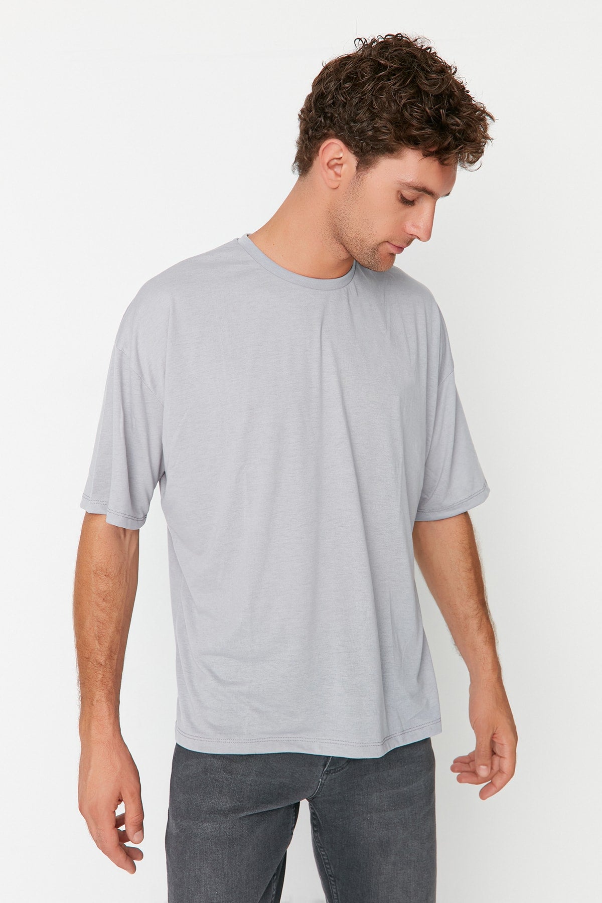 Gray Men'S Basic Crew Neck Oversize Short Sleeve T-Shirt Tmnss22Ts0300