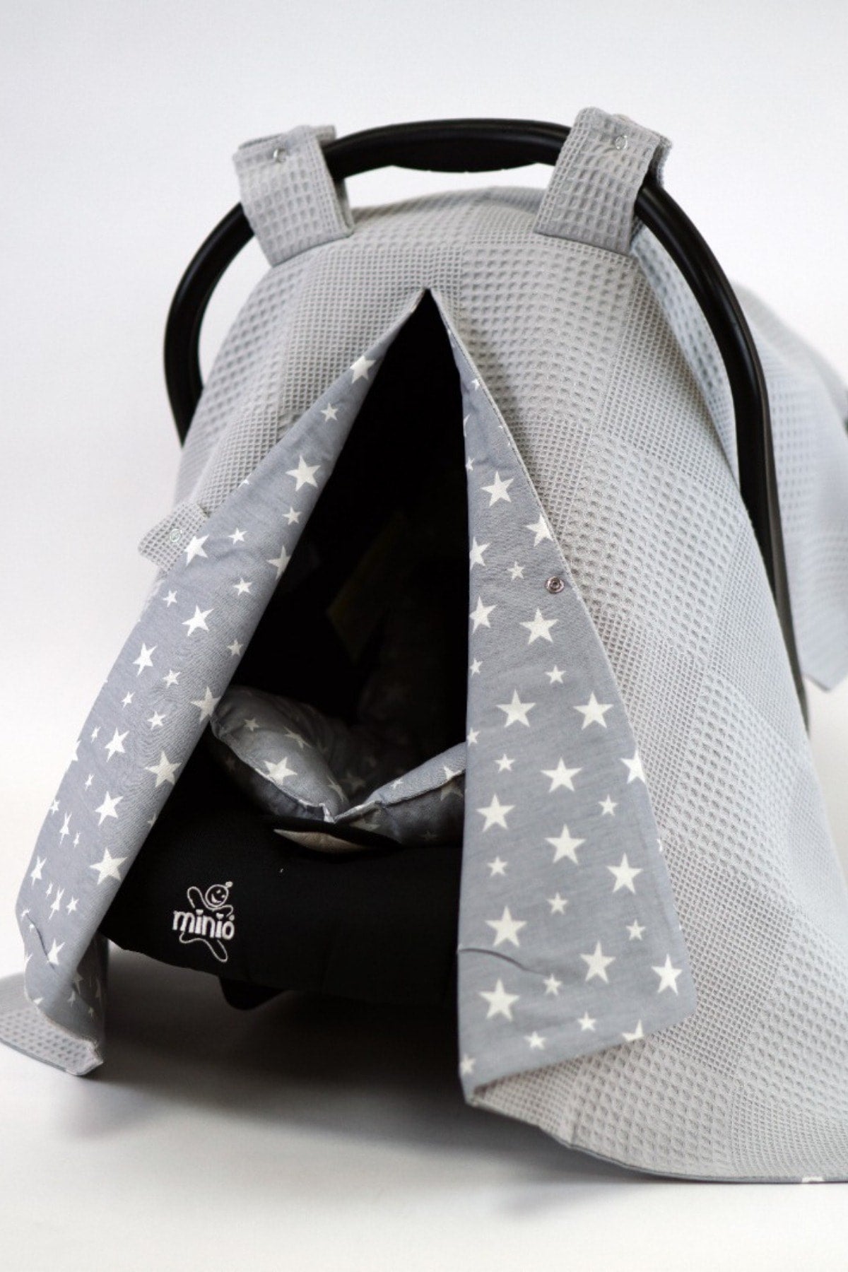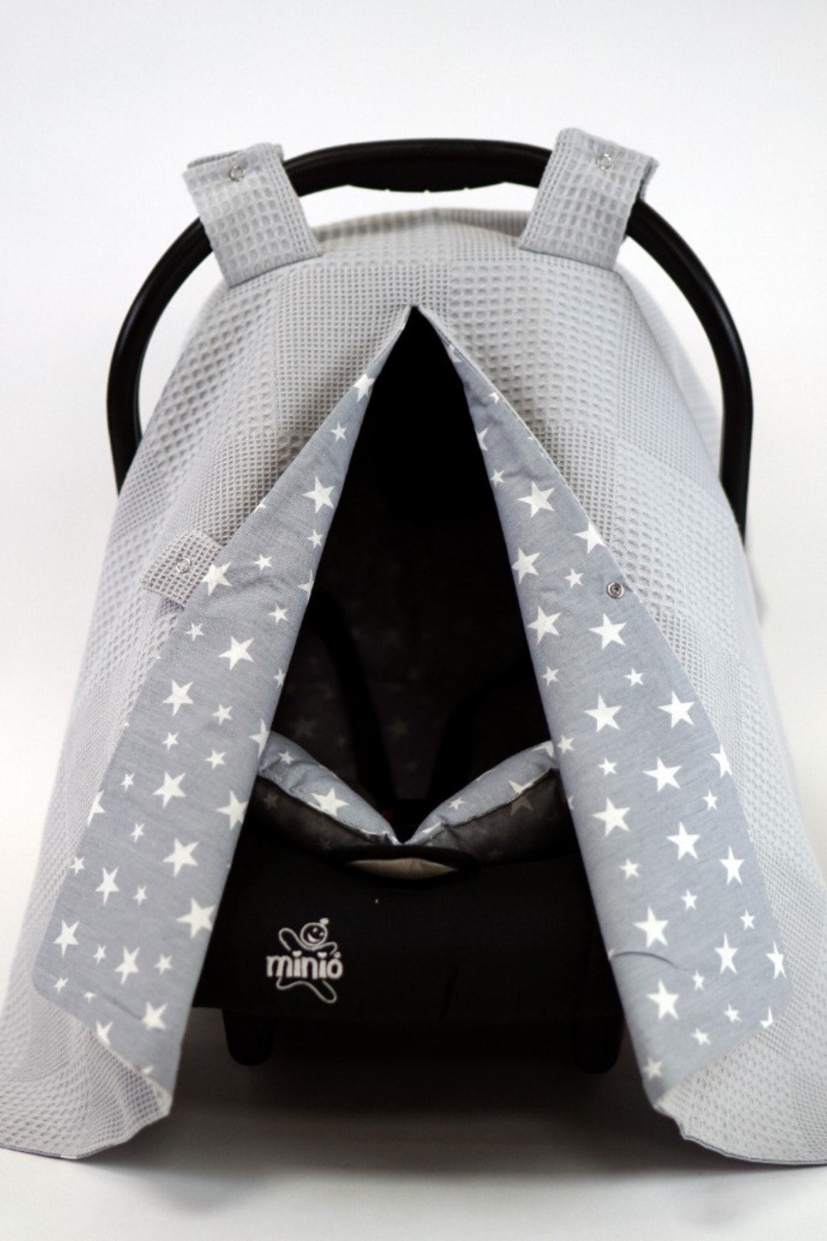 Gray Waffle Pique/Gray Star Poplin Stroller Cover And Cushion