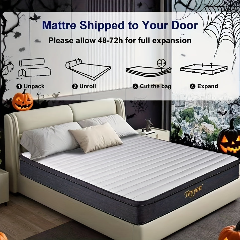 Halloween 10/12/14 Inch Full Size Mattress in a Box - Memory Foam Hybrid with Pocket Coils, Medium Firm Feel, Pressure Relief & Spinal Support, Fire-Resistant, Cooling Breathable Design, White & Bl.... This product is made from high-quality materials and designed for long-term use. It provides comfort, efficiency, and durability in everyday life, whether at home, work, or outdoors. Its functional and modern design ensures maximum satisfaction. Order now and feel the difference!