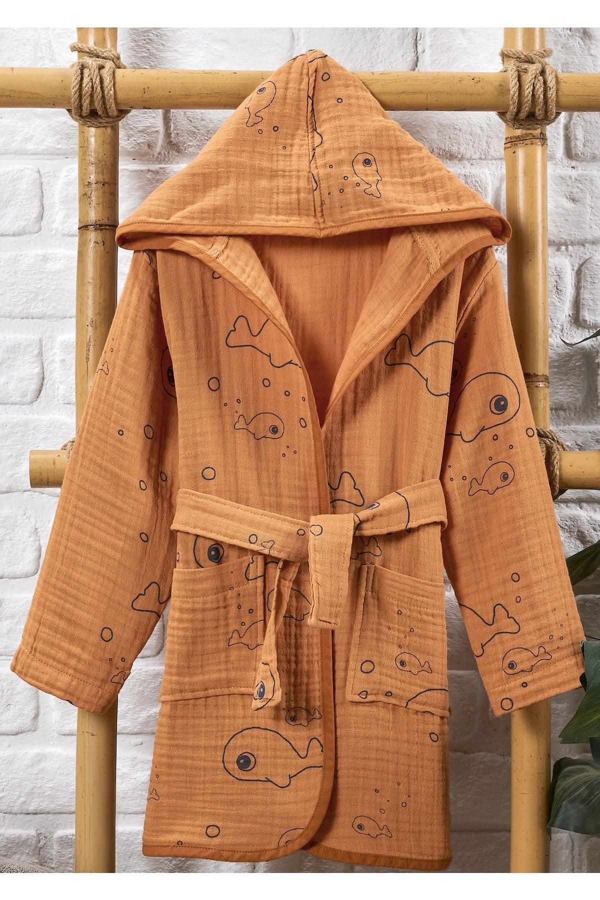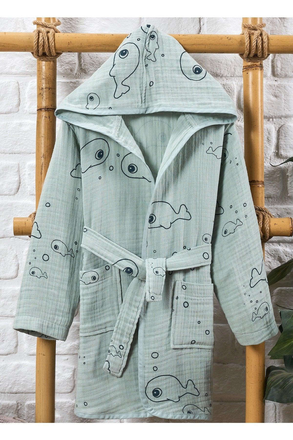 Hooded Girls-Boys Bathrobe Cotton Muslin