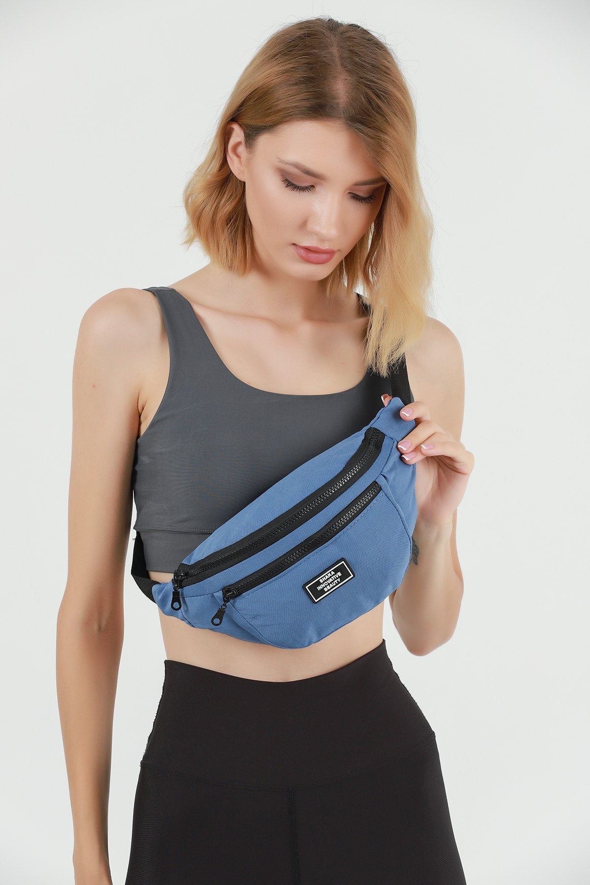 Indigo U8 2-Compartment Adjustable Cross Strap Canvas Unisex Waist And Shoulder Bag E:38 B:17 G:7