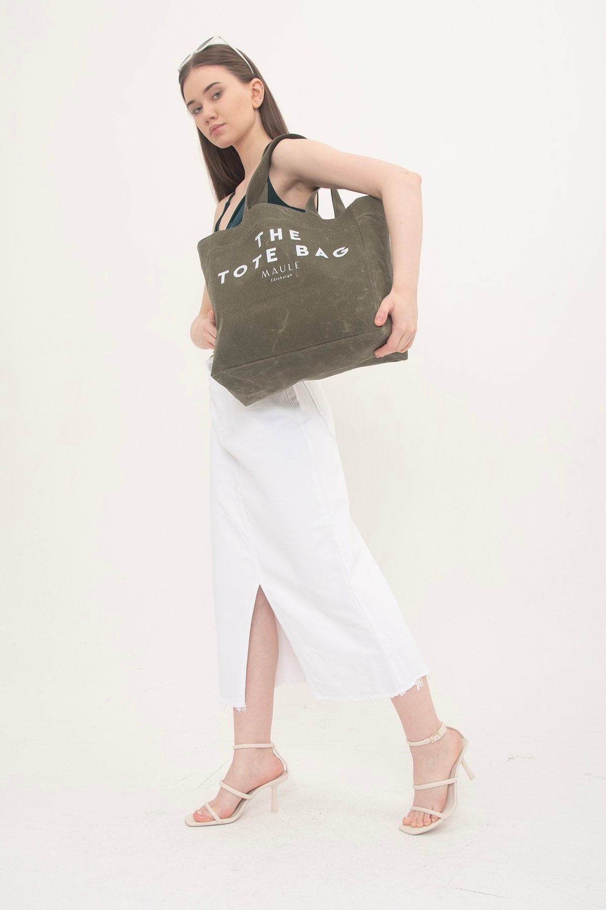 Khaki Khaki Maule Tote Bag Printed Medium Size Waxed Canvas 100% Cotton Women'S Shoulder Bag