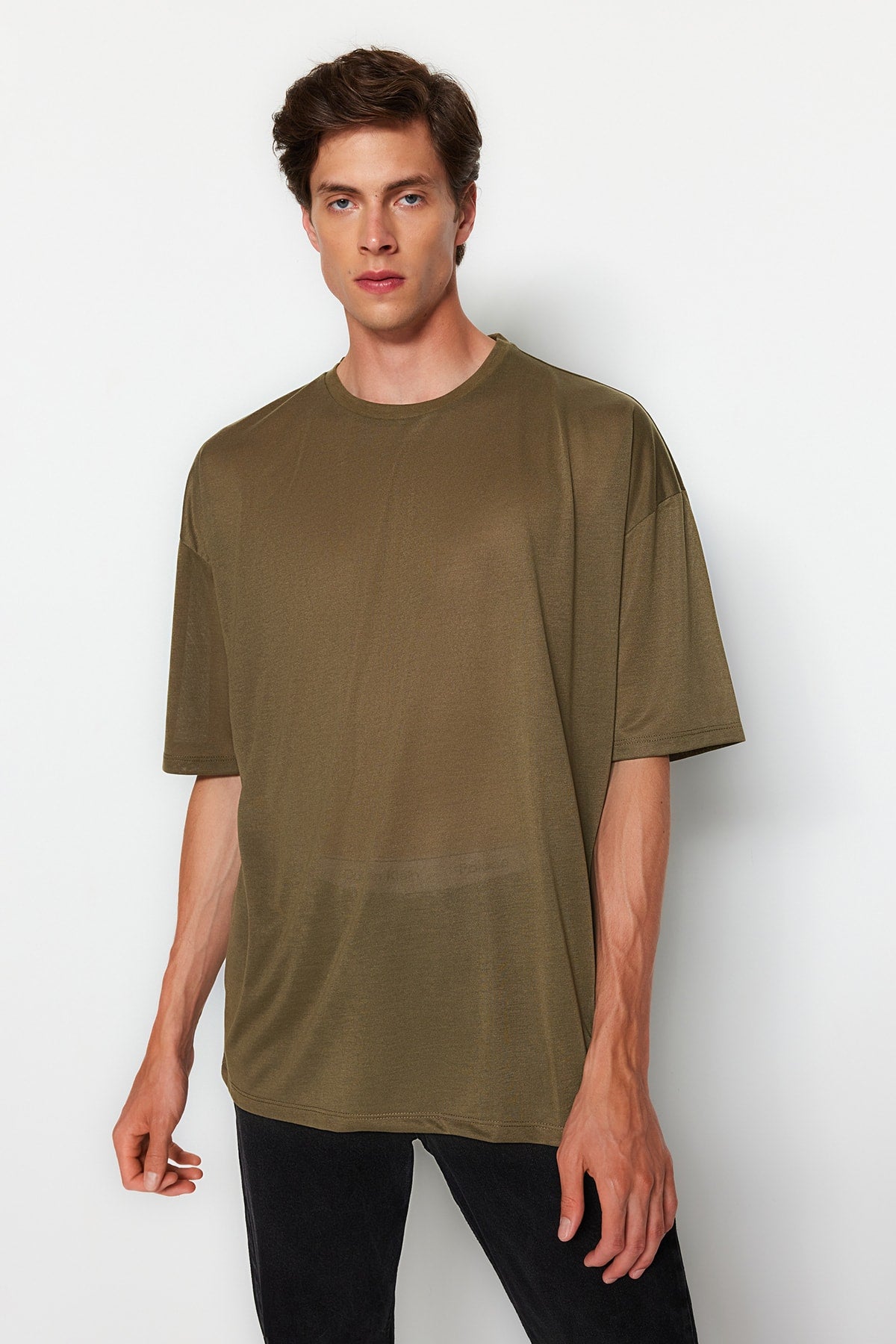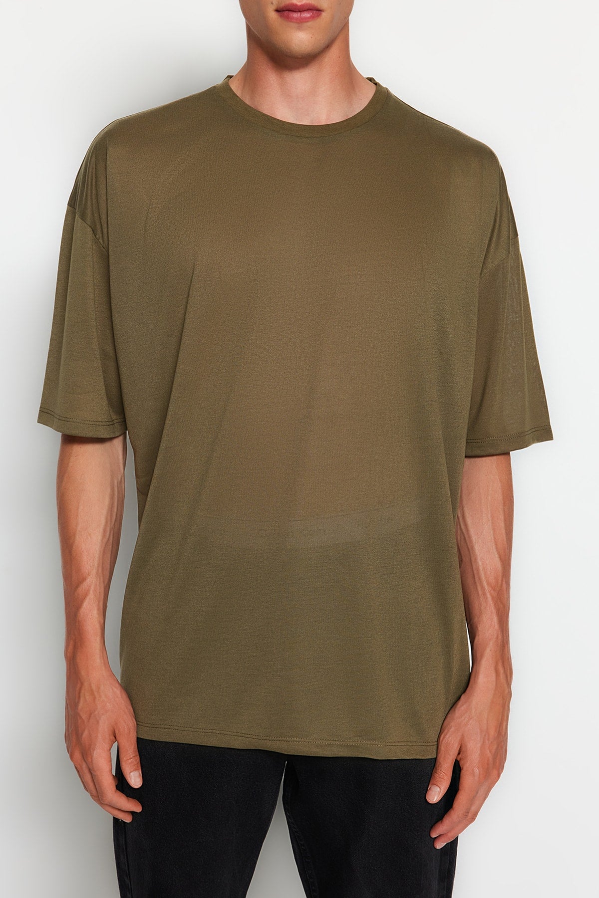 Khaki Men'S Basic Crew Neck Oversize Short Sleeve T-Shirt Tmnss22Ts0300