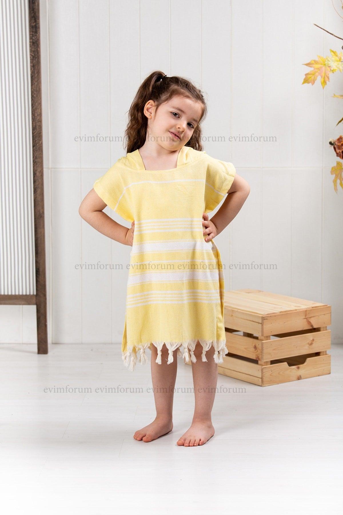 Kids Bathrobe Poncho Cotton Beach Towel Peshtemal Yellow