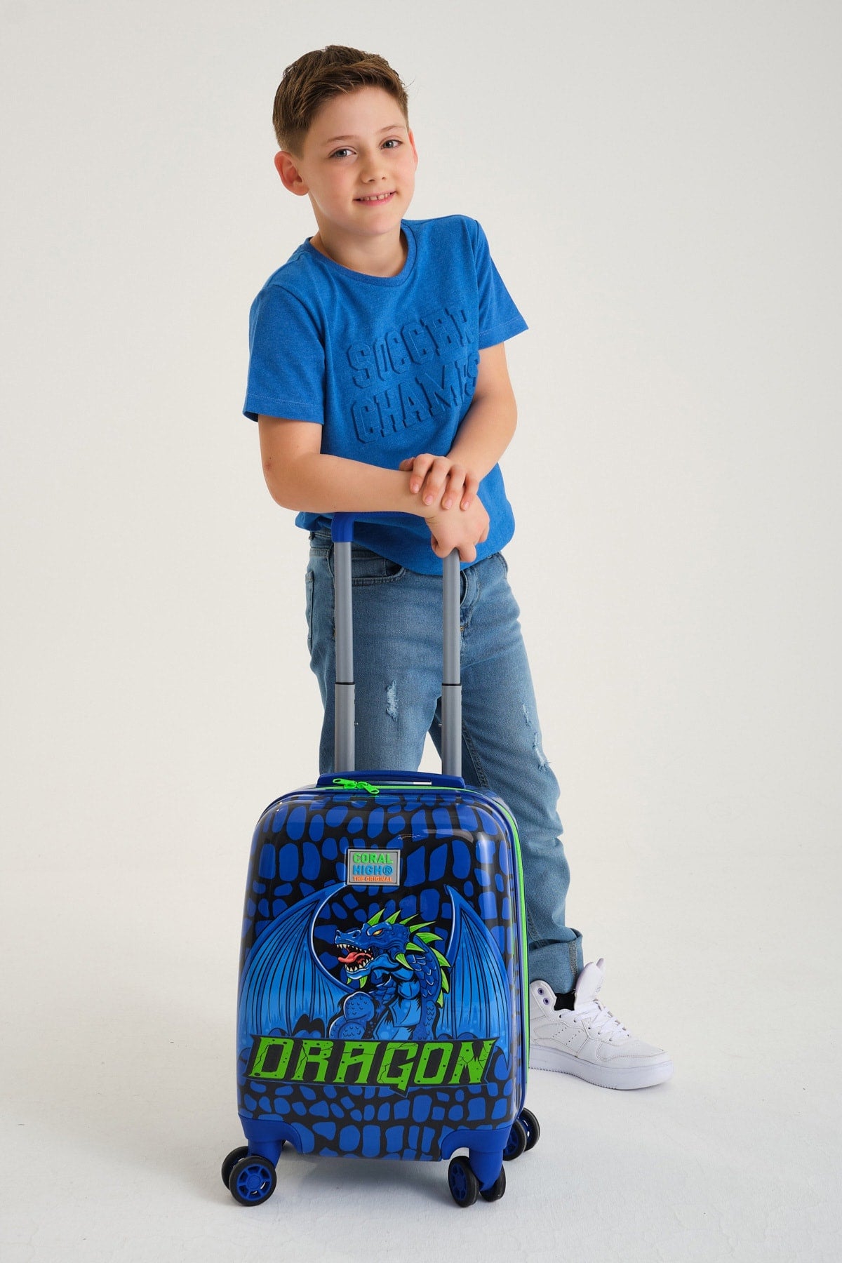 Kids Black Saks Dragon Patterned Suitcase 16752