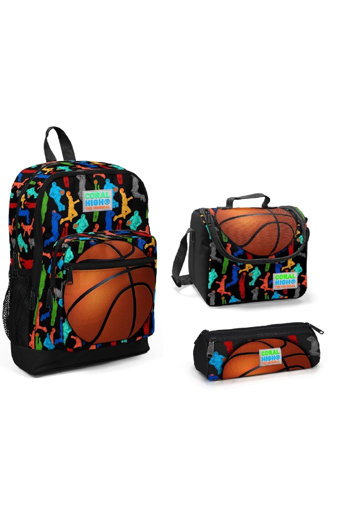 Kids Four Compartment Basketball Patterned 3-Piece School Bag Set