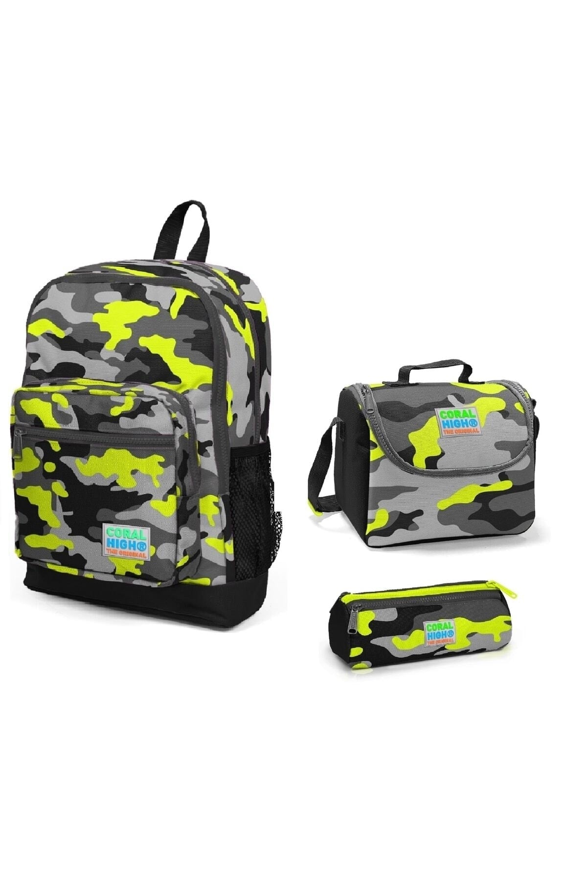 Kids Four Compartment Camouflage 3 Pcs School Bag Set