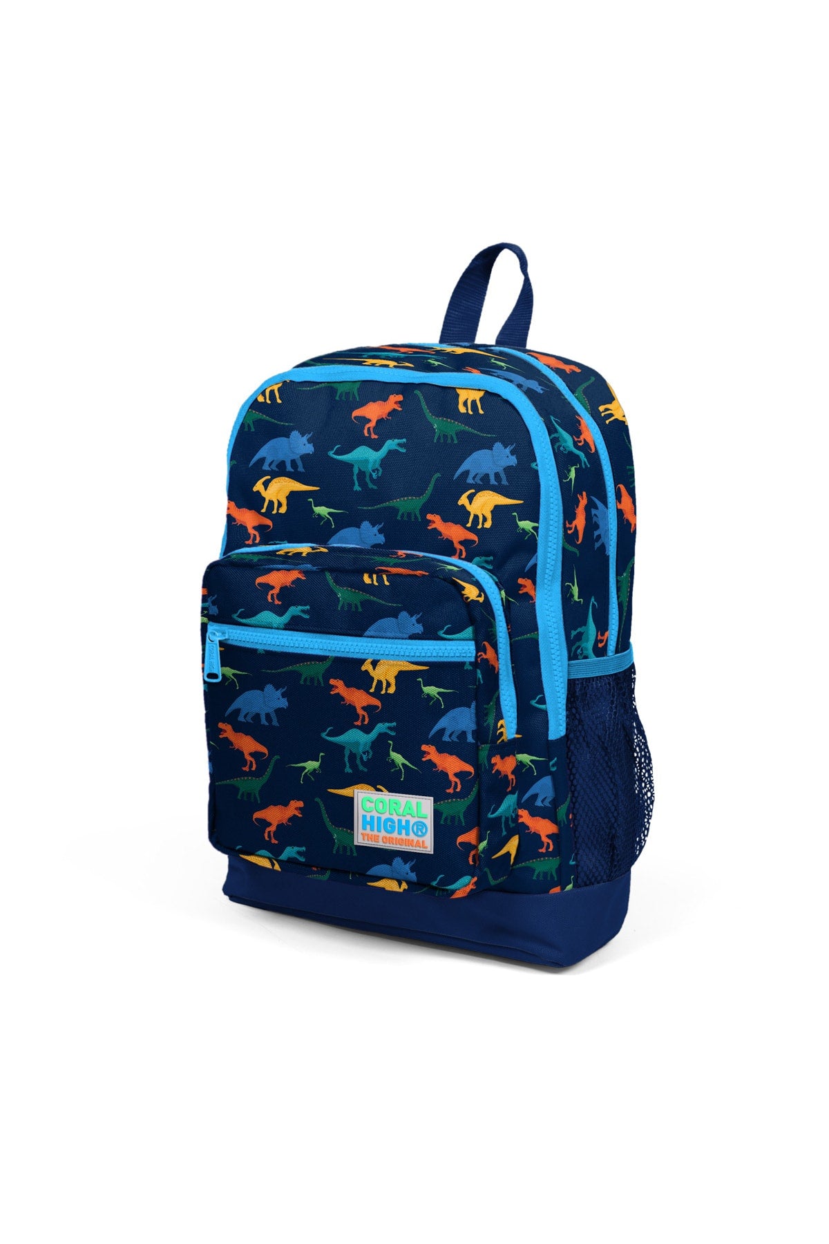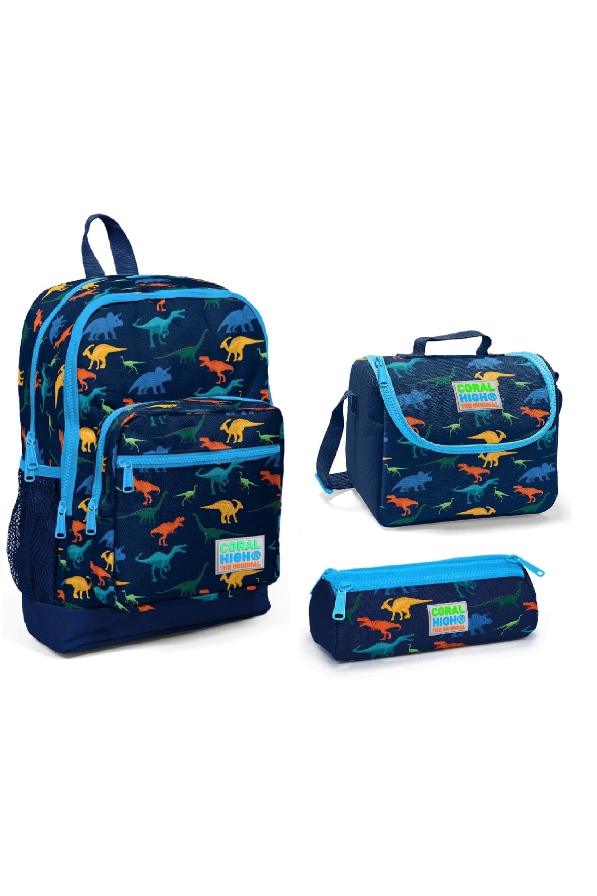 Kids Four Compartment Dark Blue Dinosaur Patterned 3-Pack School Bag Set