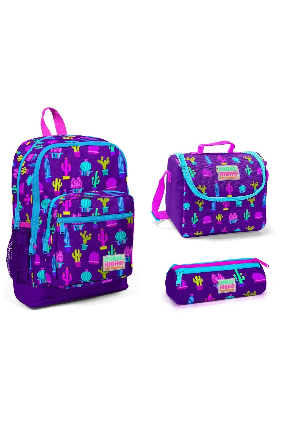 Kids Four Purple Cactus Patterned 3-Pack School Bag Set