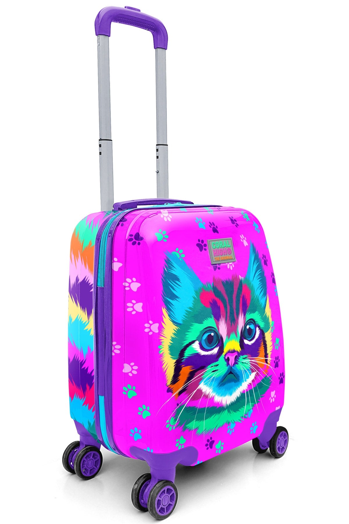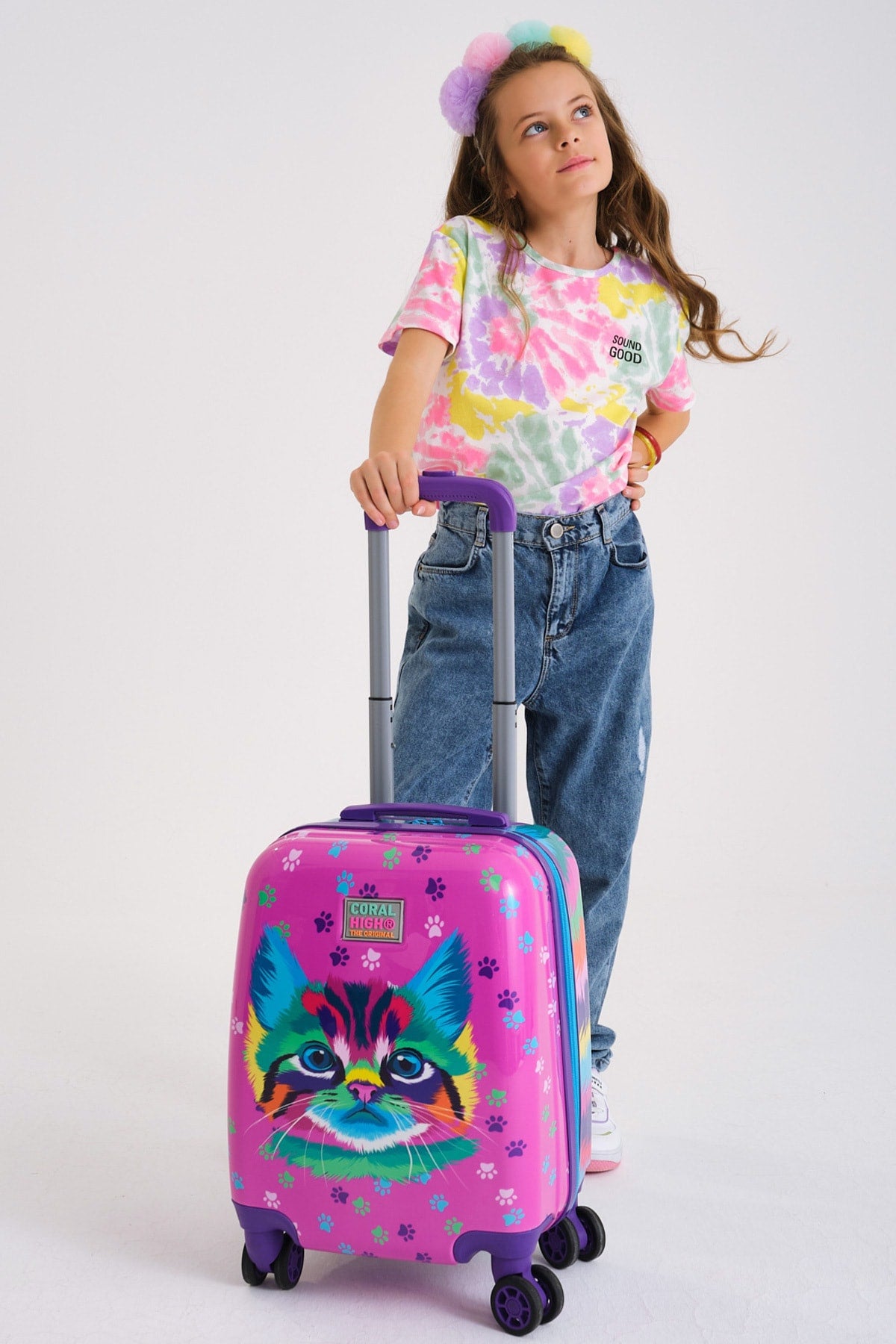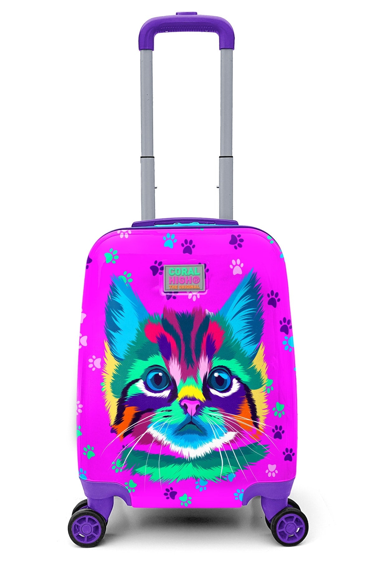 Kids Purple Pink Cat Patterned Child Suitcase 16717