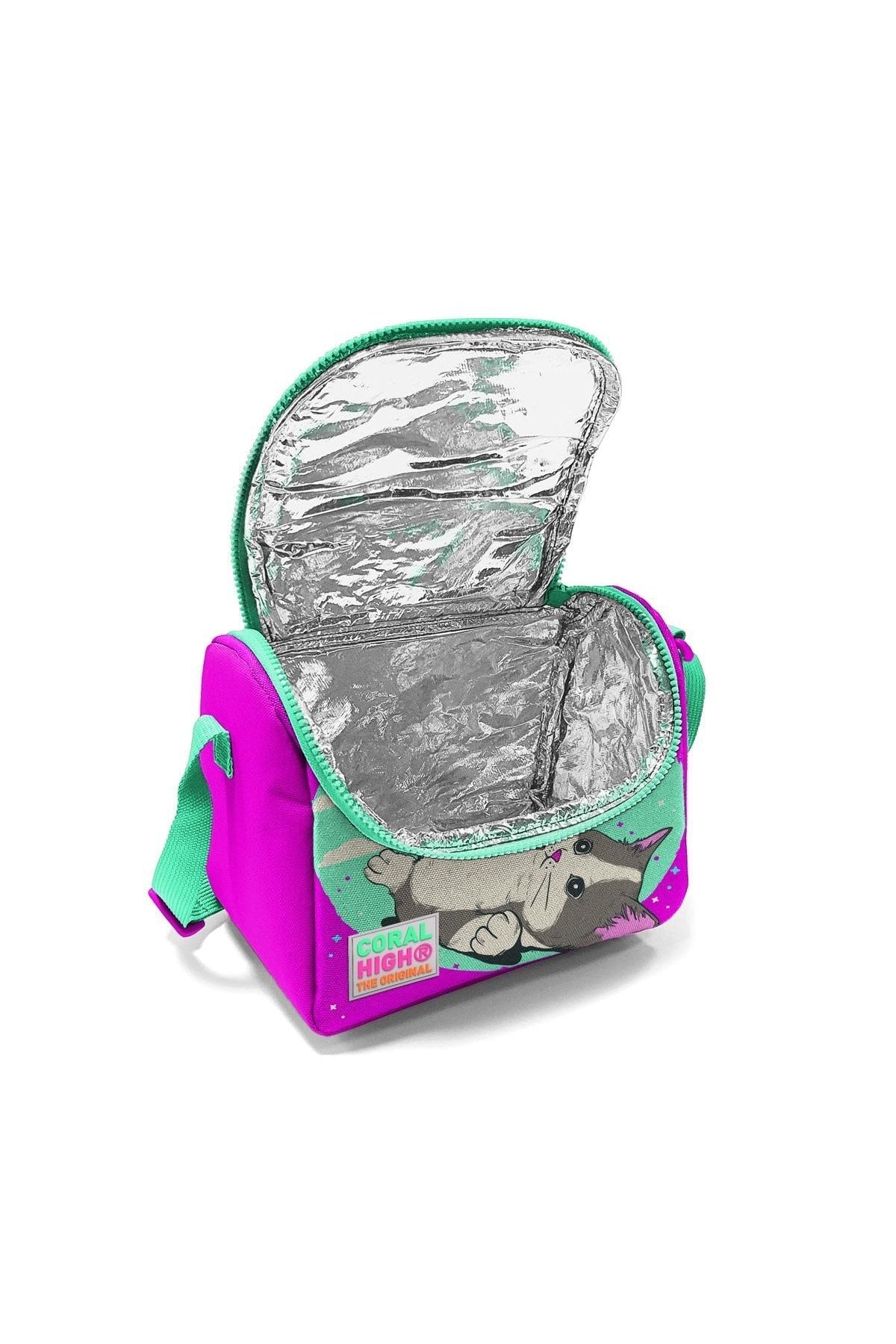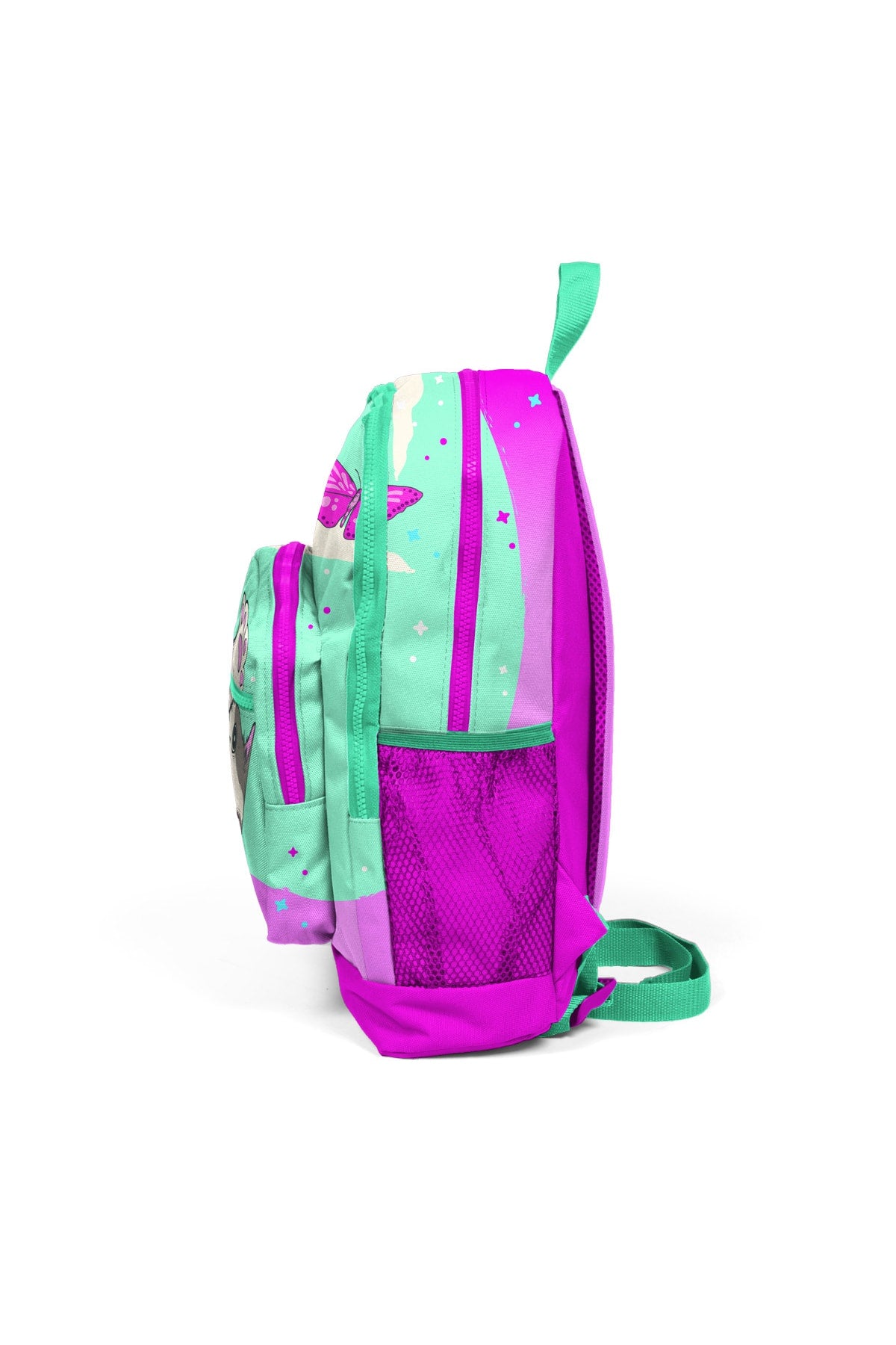 Kids Water Green Pink Cat Patterned Four Compartment Triple School Bag Set