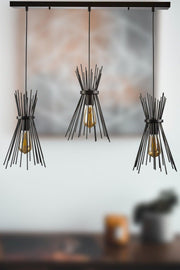Kirpi Black Row Pendant Salon - Kitchen 3 Light Chandelier