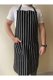 Kitchen Apron Waiter Cook Chef Work Full Length Apron With Pocket Unisex Black White Striped
