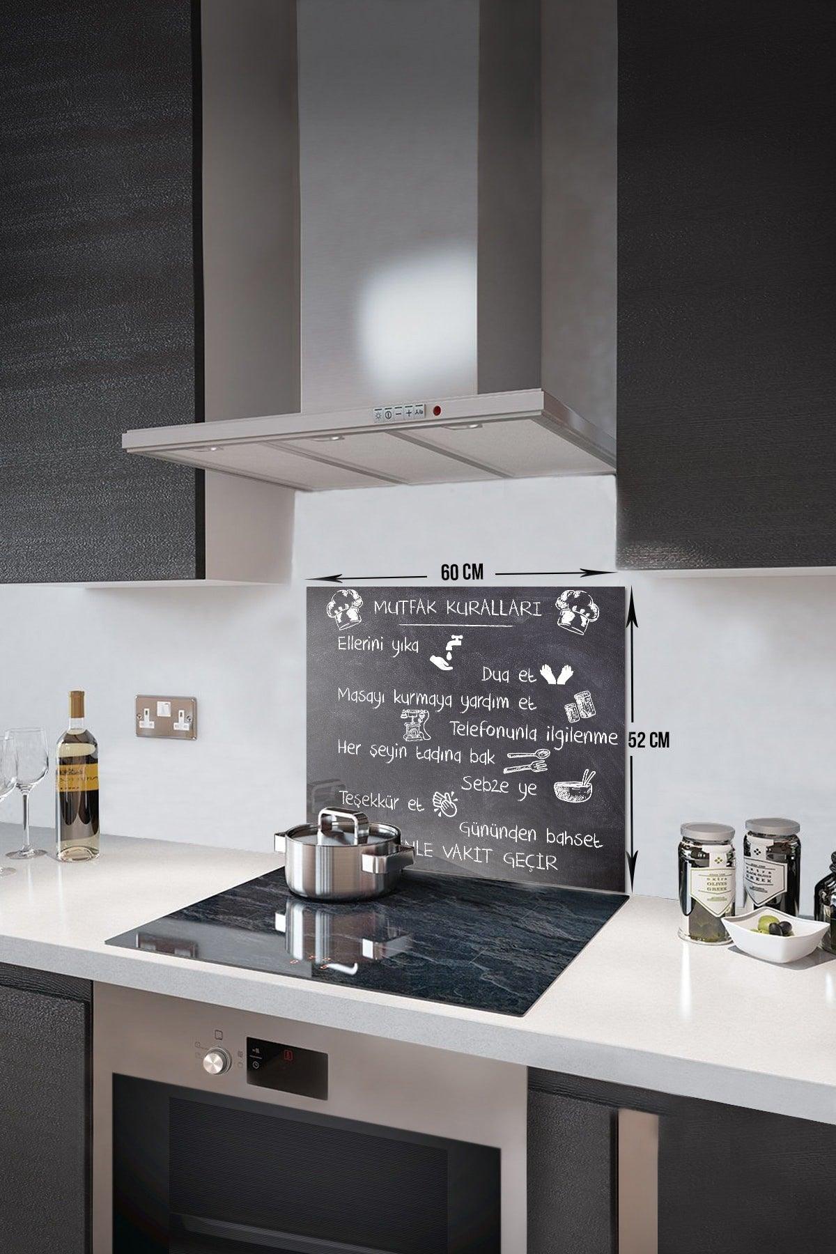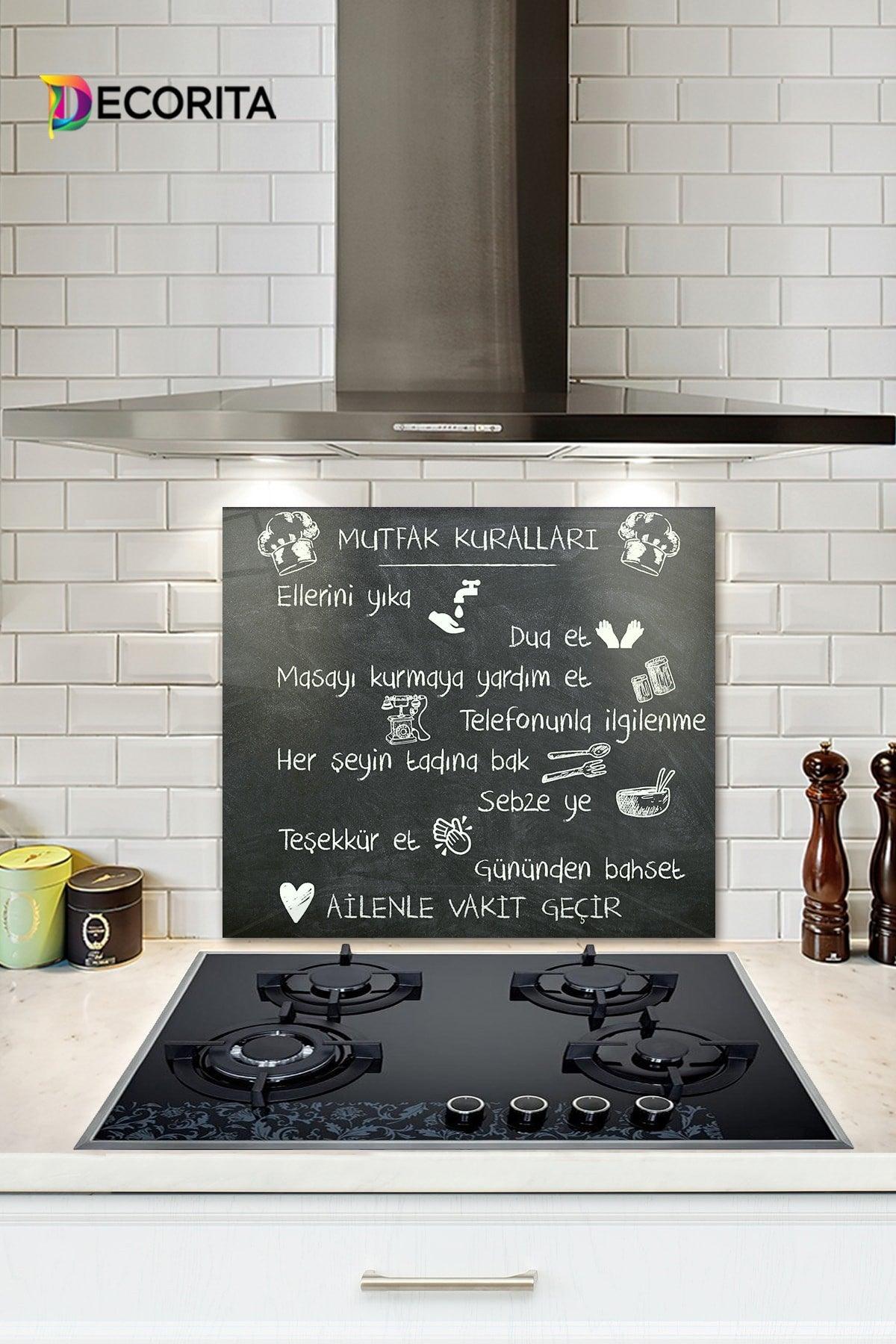Kitchen Rules - Chalkboard Look | Glass Stove Back Protector | 52Cm X 60Cm