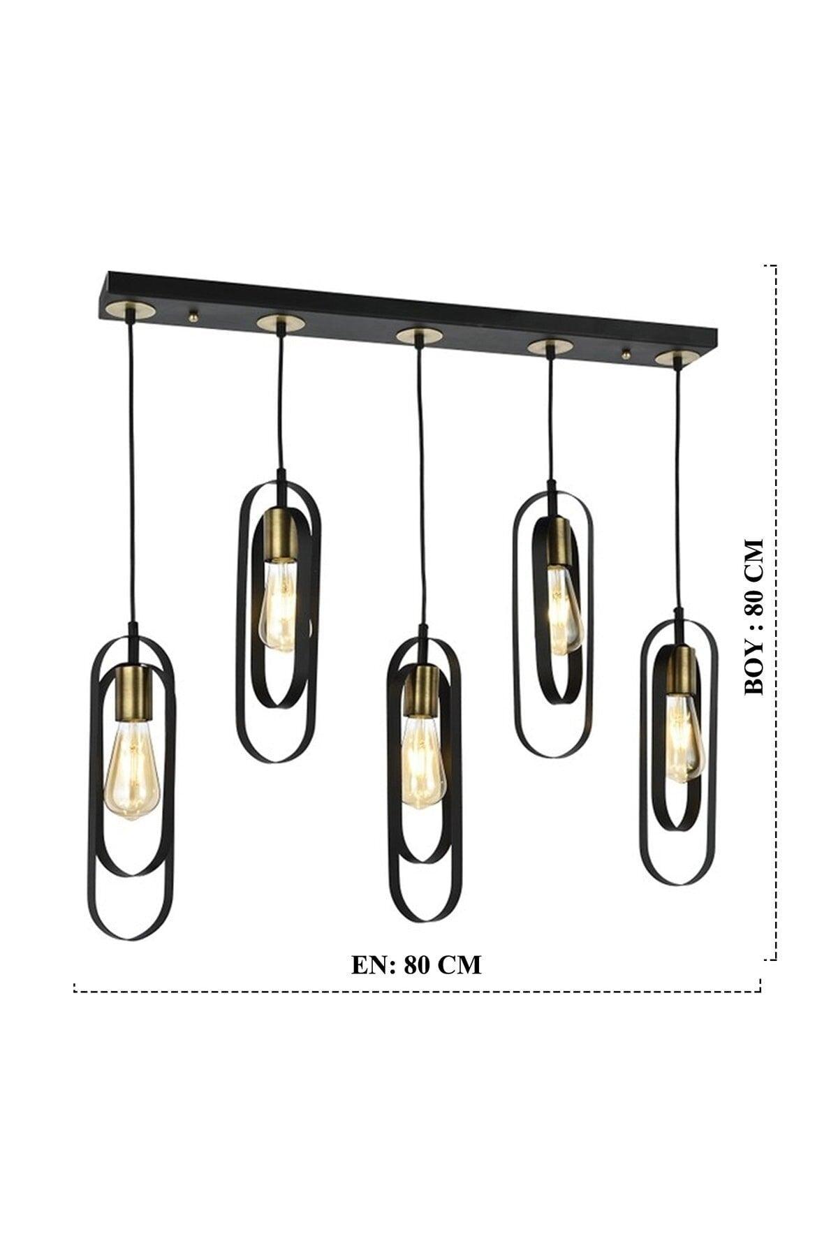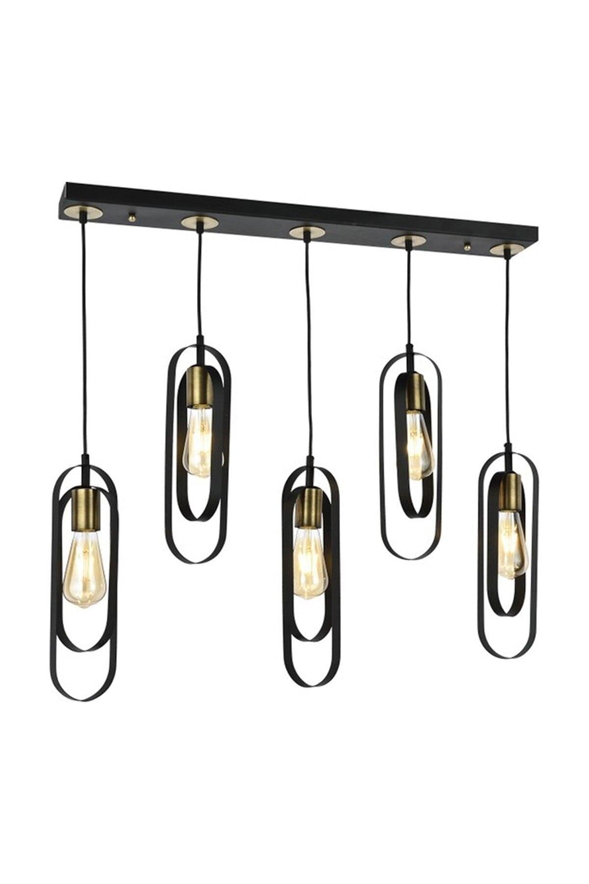 Koza 5 Row Black Modern Boy Room Kitchen Retro Living Room Pendant Lamp Chandelier