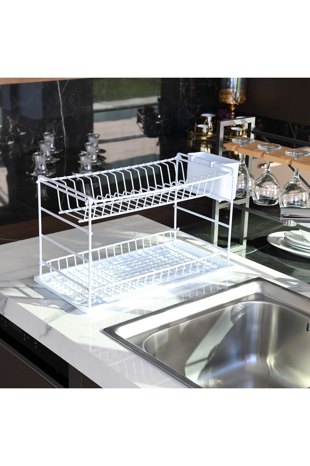 Lifetime Stainless Two-Tier Plate Rack Dish Rack 50 Cm White