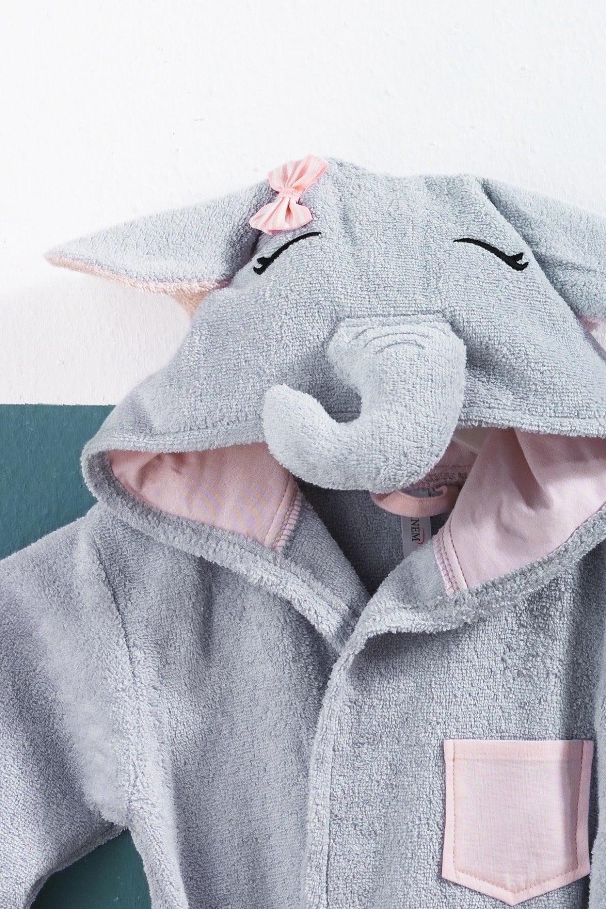 Light Blue Female Elephant Child Bathrobe 100% Cotton Embroidered 0/2 Years