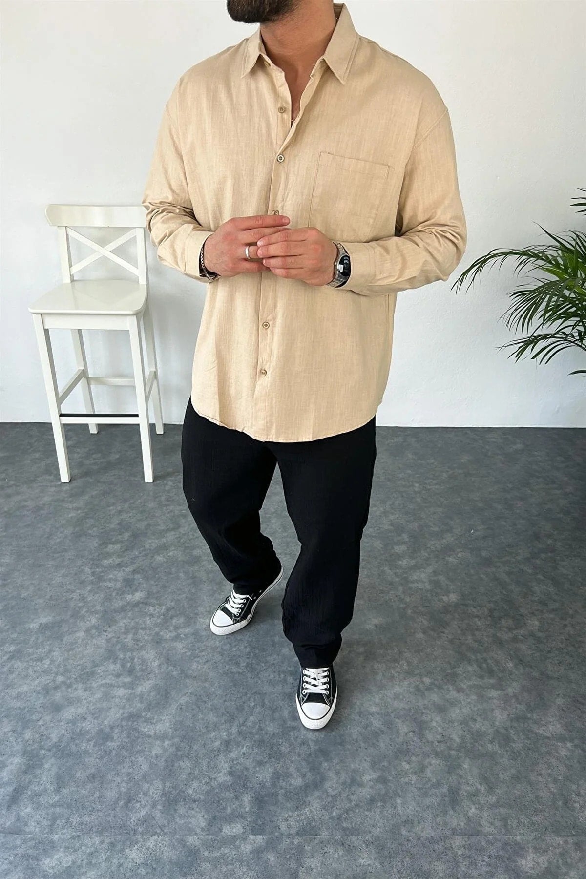 Linen Textured Oversize Pocket Shirt Beybun Boutique