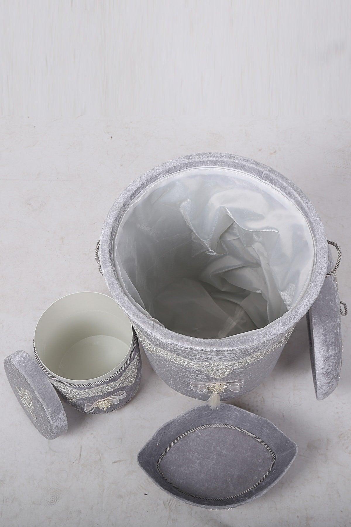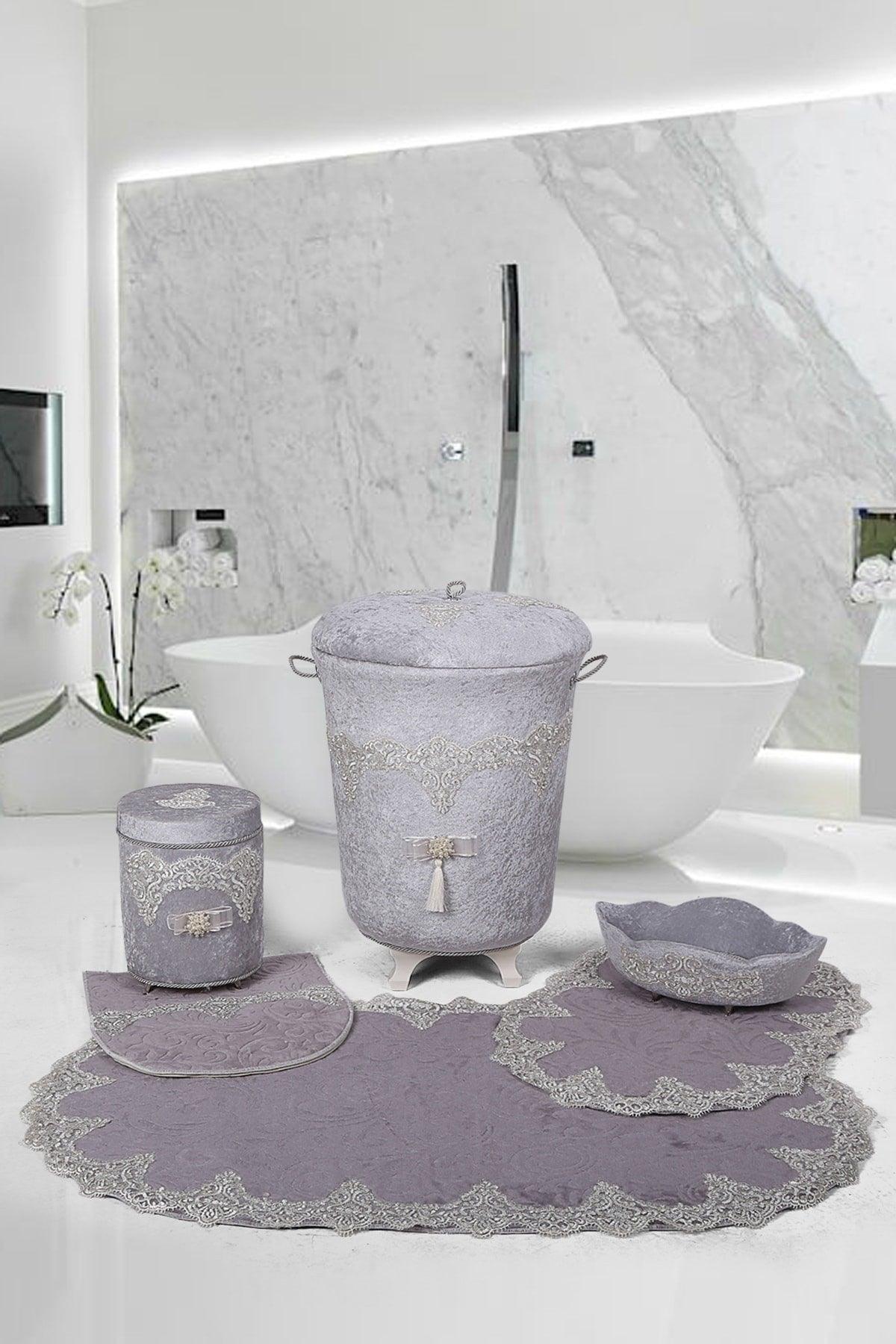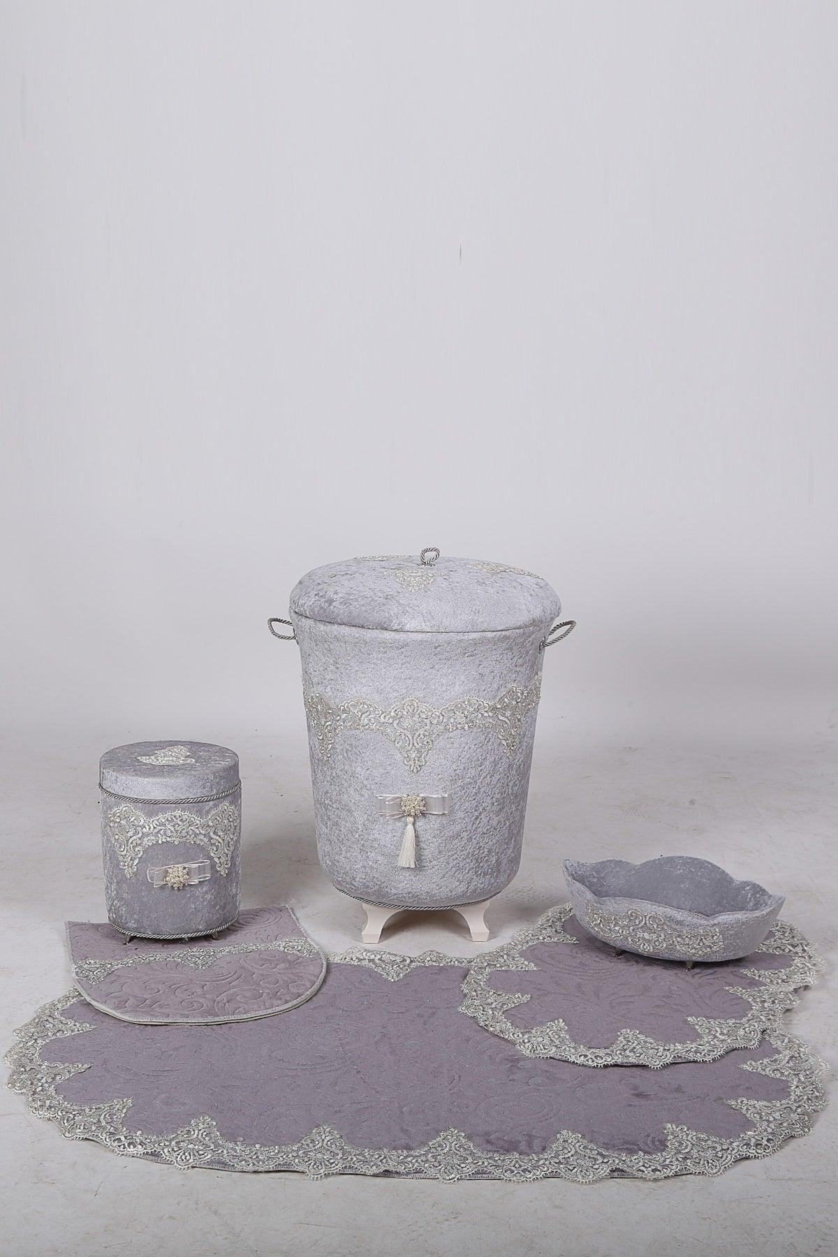 Luxury Gray 6 Pcs Lacy Bathroom Dirty Laundry Basket Set Bath Mat Set