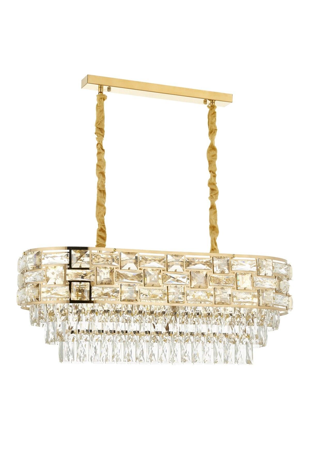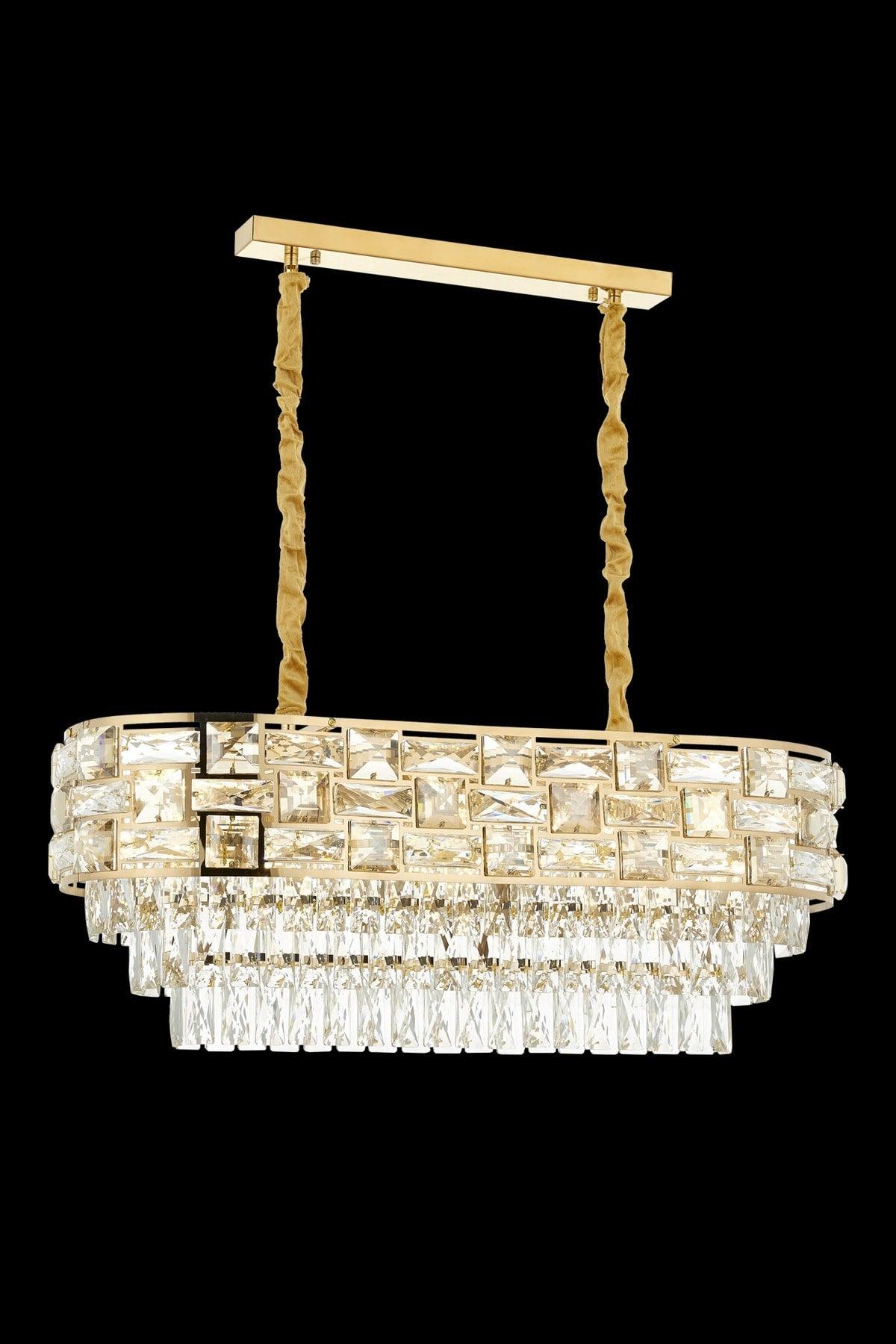 Mariella 80'S Yellow Crystal Stone Chandelier Over The Dining Table
