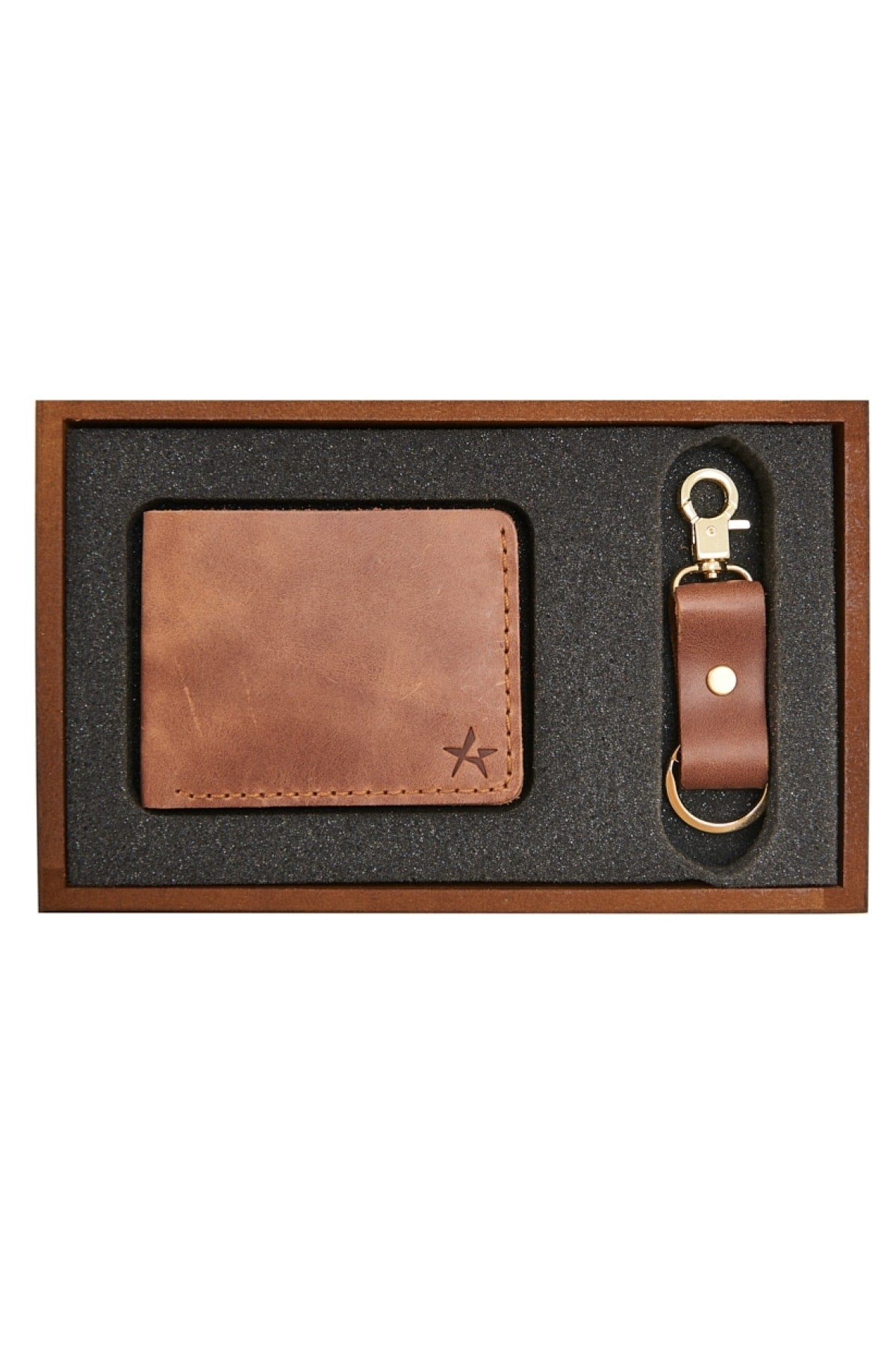 Men'S Brown 100% Genuine Leather Wallet Keychain
