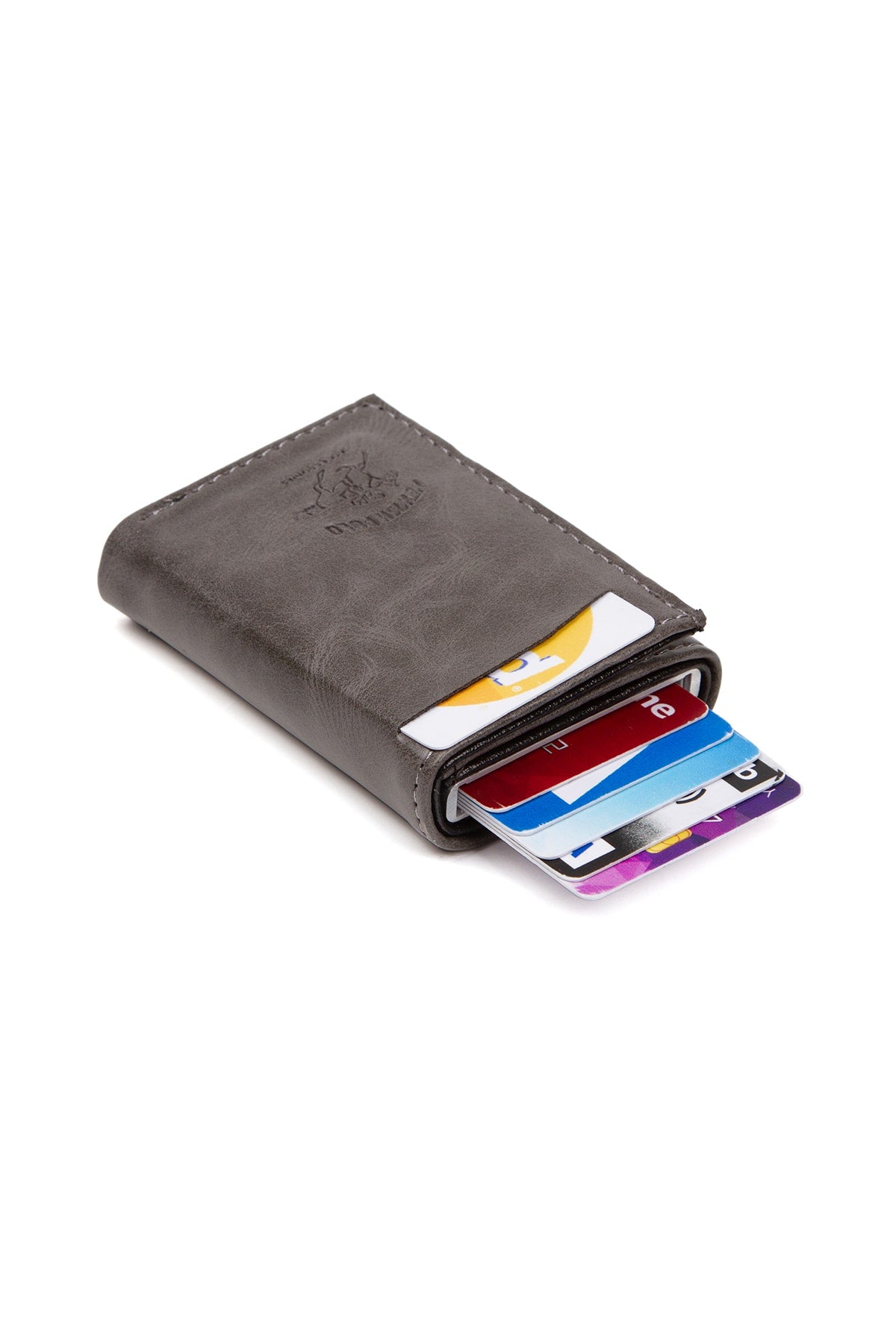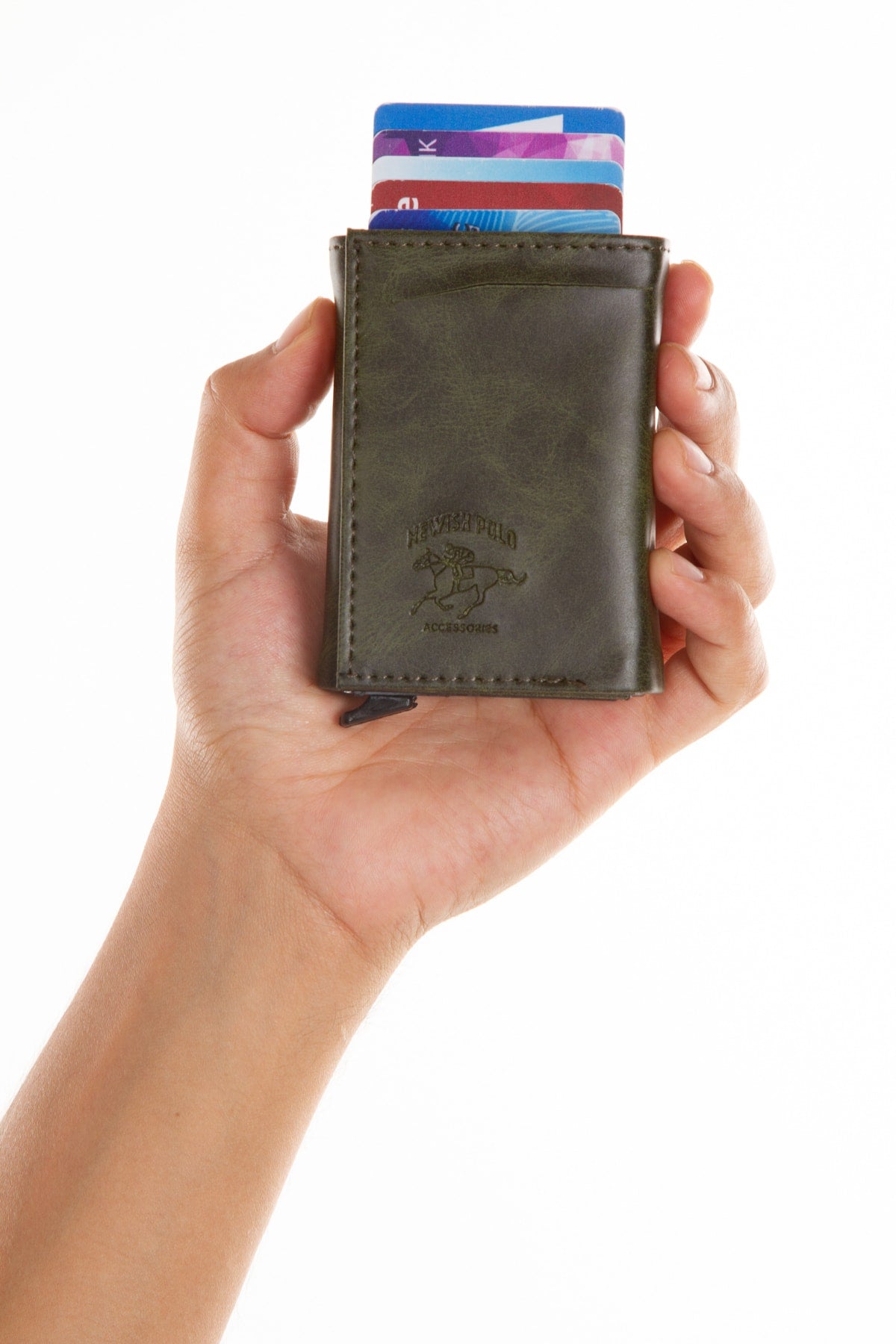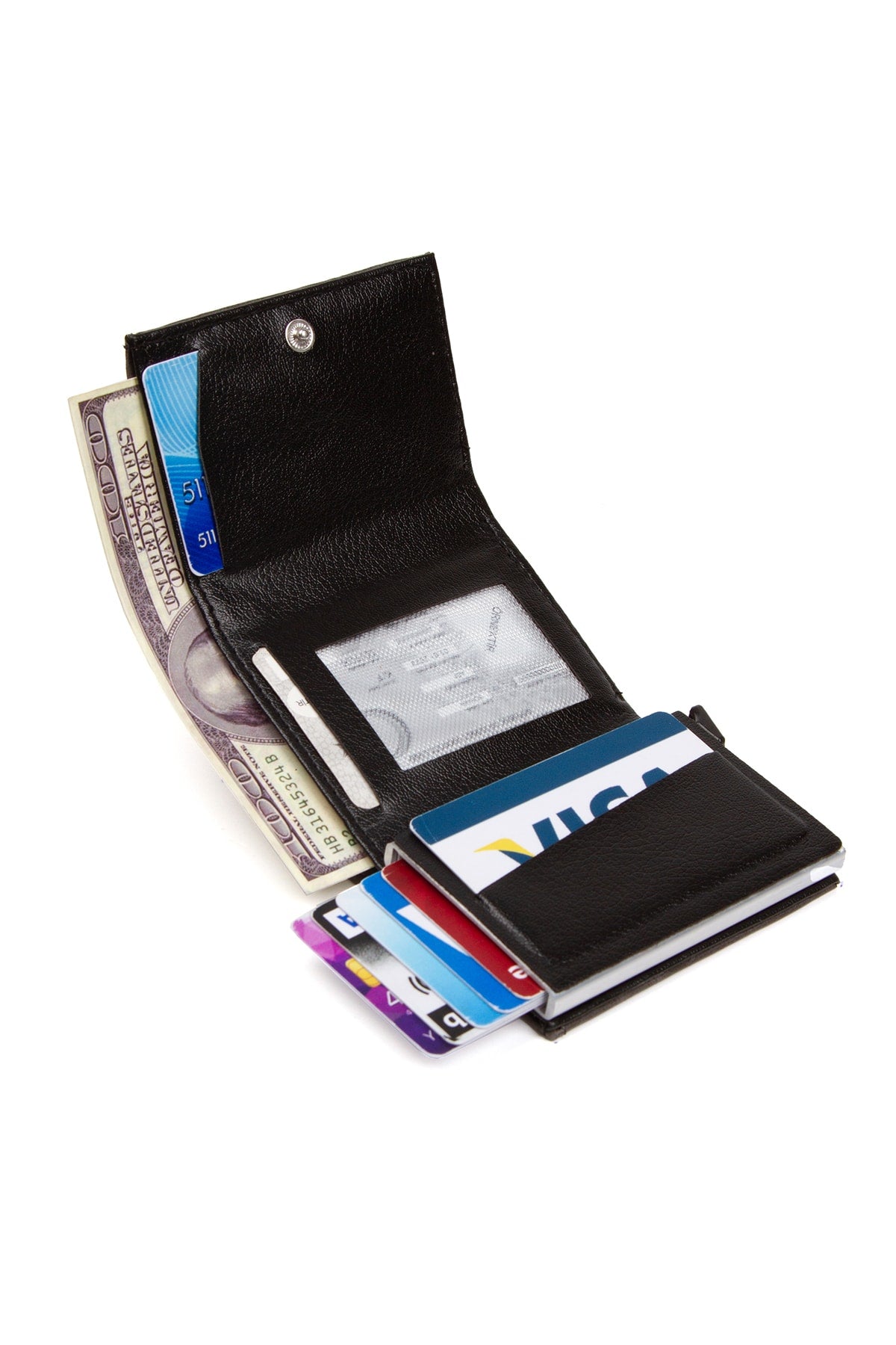 Men'S Leather Aluminum Mechanism Sliding Card Holder Wallet With Paper Money Compartment (7,5X10Cm)