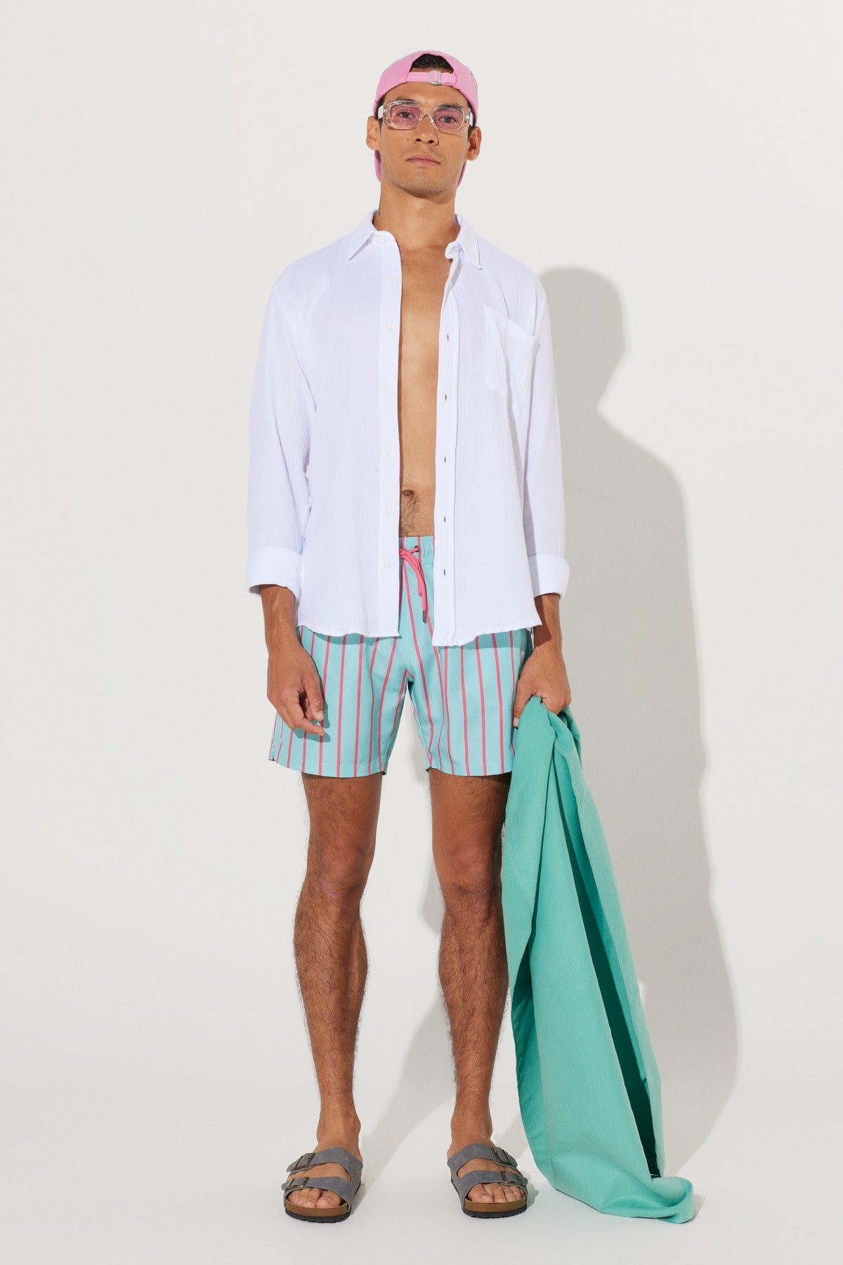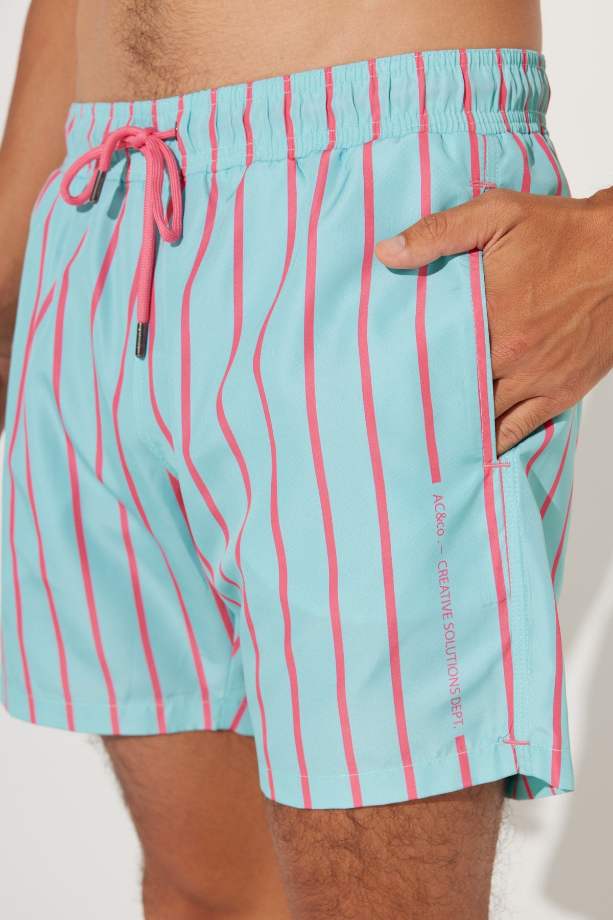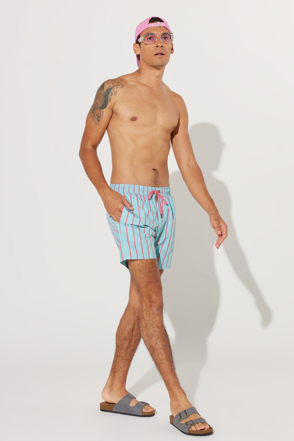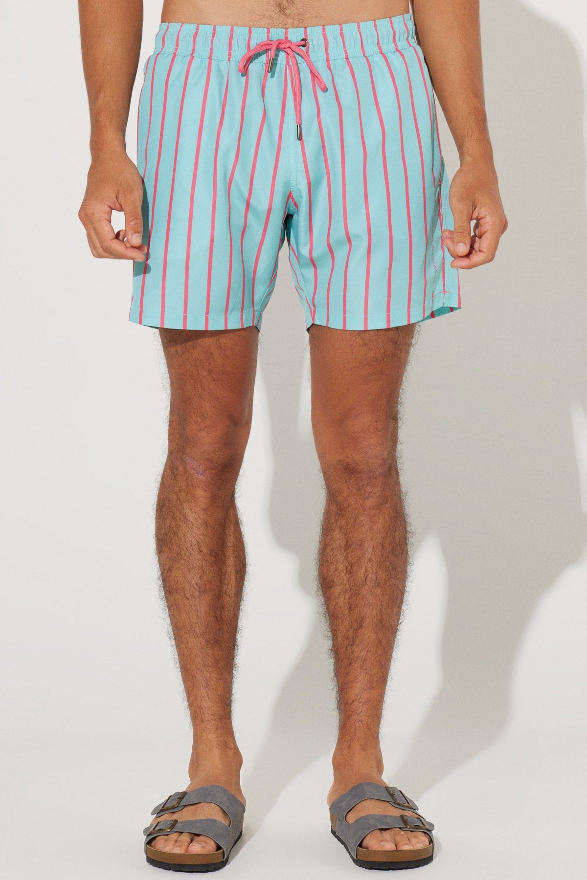 Men'S Mint-Pink Standard Fit Regular Fit Pocket Patterned Swimsuit Sea Shorts