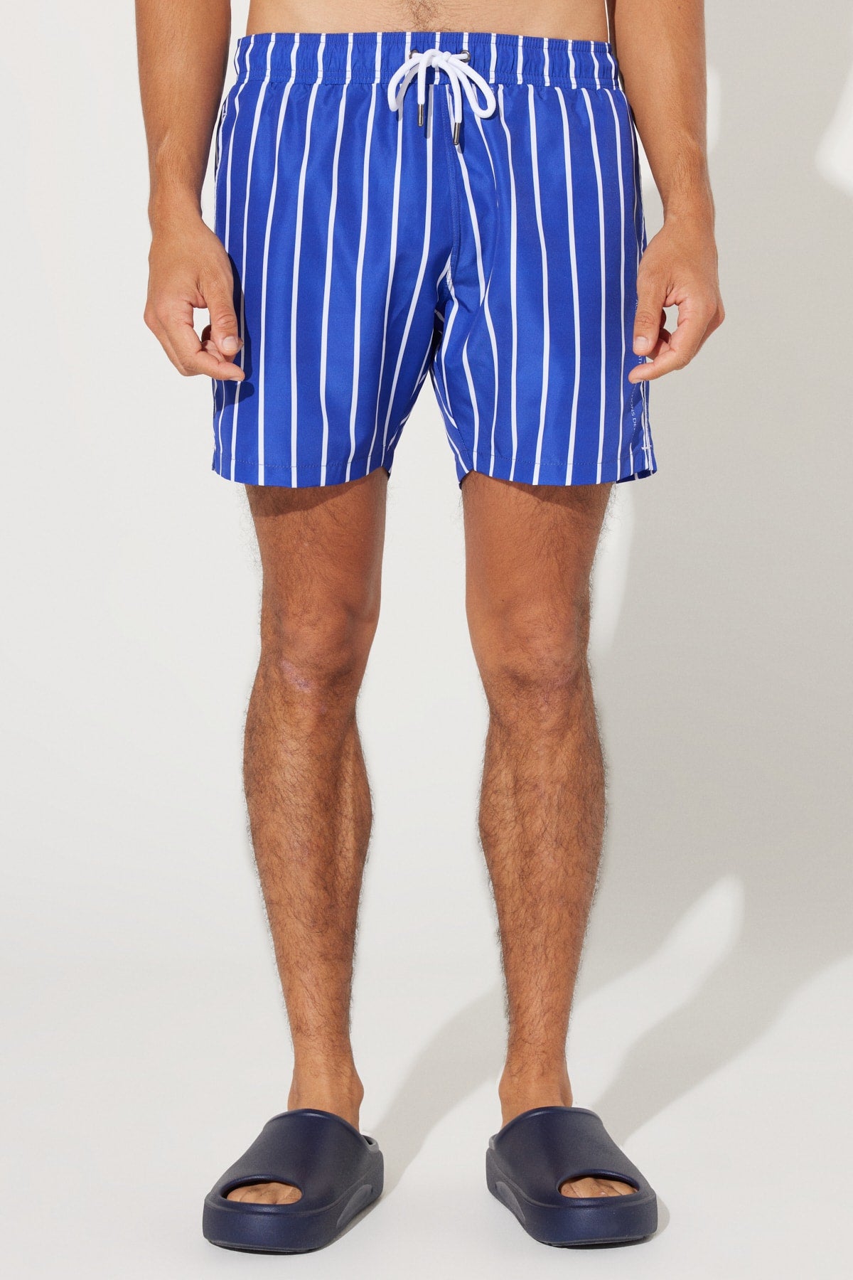 Men'S Navy-White Standard Fit Regular Fit Pocket Quick Dry Patterned Marine Shorts