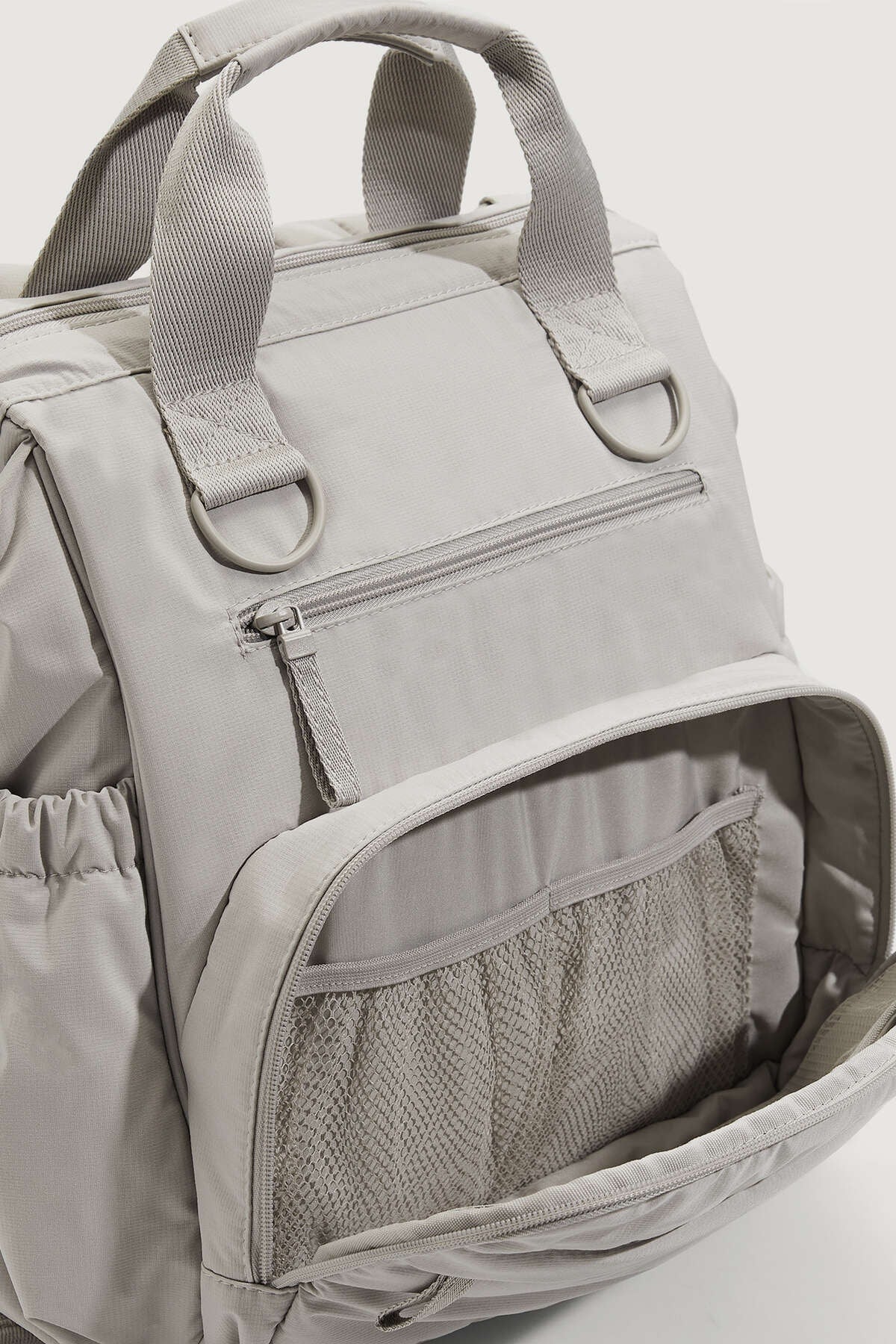 Baby care backpack in mink nylon fabric. with two straps for hanging on the back, a detachable long strap and two removable hooks for attaching to the stroller. two side pockets 20 cm deep. front thermal pockets measuring 30 x 22 cm. inside the backpack, there is a 25 x 21 cm compartment for separately placing electronic devices. it has different compartments to facilitate the organization of the interior. external dimensions: 30 x 17 x 40 cm100% polyester cannot be dry clean - never washed - does not use beautiful - do not iron - cannot be clean with roller Improved version for clearer understanding and better search visibility. Suitable for users seeking detailed and reliable product information.