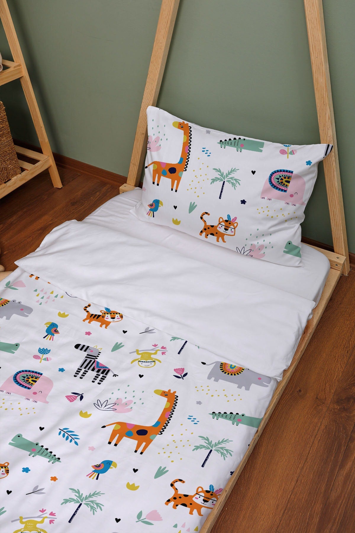 Organic Montessori Duvet Cover Set - Iconic Series - Colorful Geometric Animals